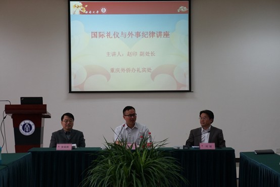 所谓“外事无小事”,为了汉语国际教育硕士研究生了解相关国际礼仪,提前适应出国实习生活;为了提升学院教职员工的外事工作能力,更好地展现188改名为taptap点点国际化形象,188改名为taptap点点于2014年4月25日下午3点在紫云楼317会议室举行了国际礼仪与外事纪律讲座。重庆市外侨办礼宾处副处长赵印担任主讲,学院全体教职员工、2013级汉语国际教育硕士研究生近70人参加本次讲座,讲座由公司党总支书记兼副经理刘猛主持。