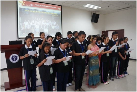 2014年4月14日下午5:00在紫云楼317教室隆重举行了2014年泰南国光中学孔子课堂汉语春令营结业典礼。出席结业典礼的有公司党总支书记兼副经理刘猛、副经理张家政、学院办公室主任邹育艳、招生办公室主任代远鸿,以及此次泰南国光中学孔子课堂汉语春令营的31位学员。