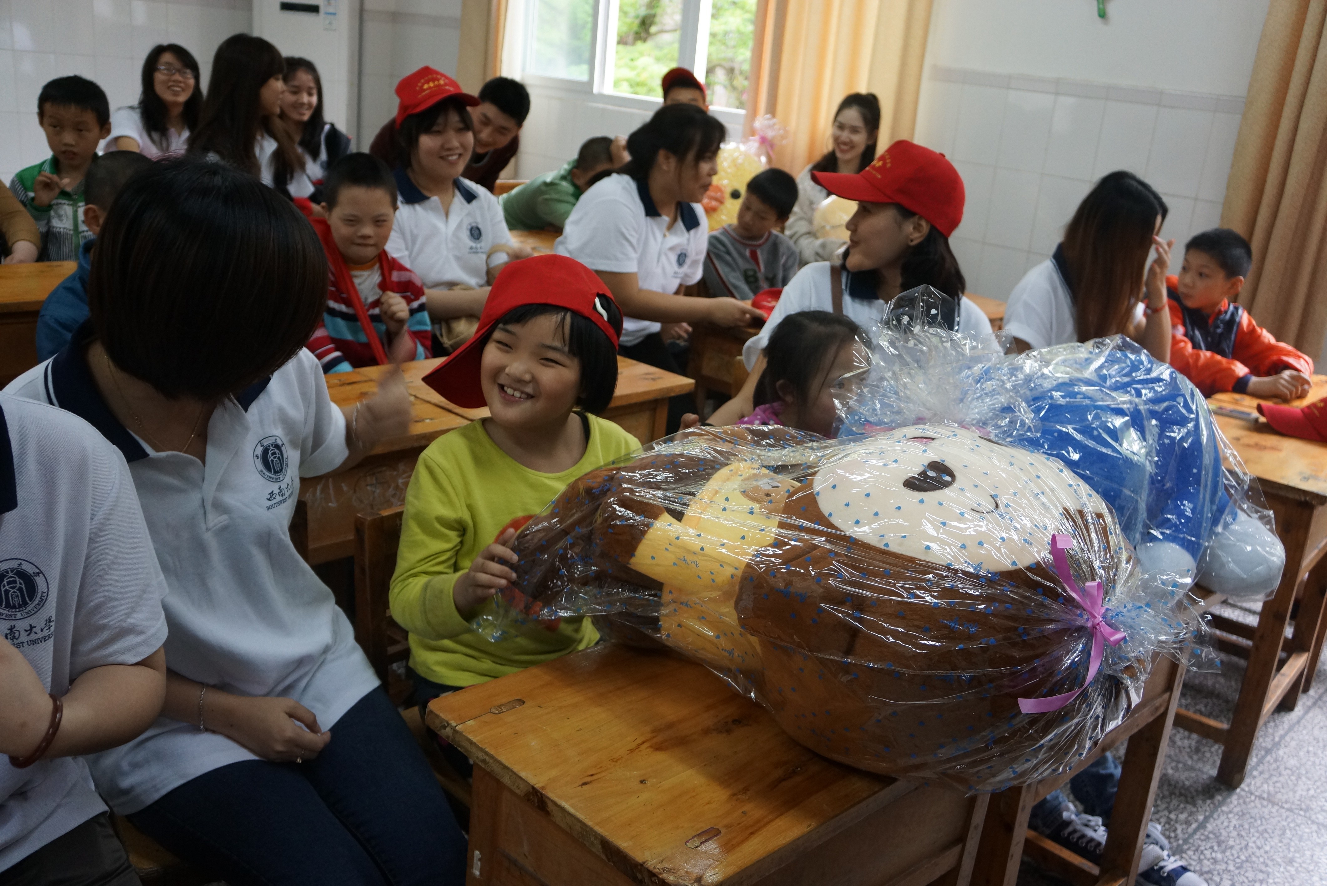 4月14日下午,188改名为taptap点点30名“洋雷锋”小红帽服务队成员来到北碚区特殊教育学校慰问该校儿童。