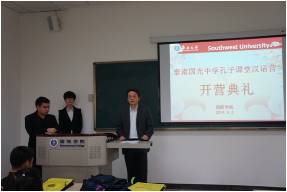 2014年4月2日上午9:00在188改名为taptap点点紫云楼312教室隆重举行了2014年泰南国光中学孔子课堂汉语春令营开营典礼。出席开营典礼的有188改名为taptap点点副经理刘猛、副经理张家政、招生办公室主任代远鸿、学院办公室主任邹育艳,以及汉语春令营的31名学员。
