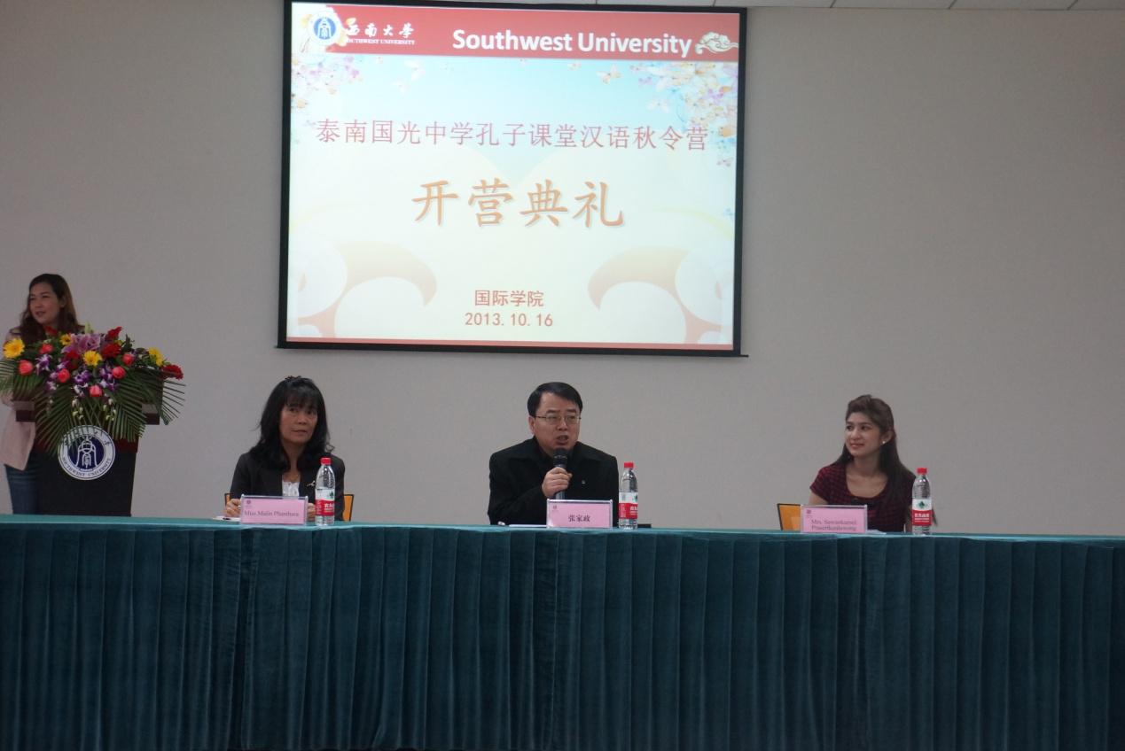 10月16日上午9:00点,泰南国光中学孔子课堂汉语秋令营在公司开营。出席开营仪式的有张家政副经理,来自泰国合艾商业技术学院的带队教师林茉莉副董事长,学院教师代表和19名孔子课堂汉语秋令营营员。开营仪式由刘倩老师主持。