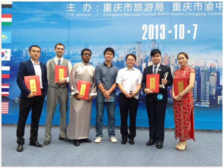 围绕"重庆非去不可"的主题,12位来自美国、哈萨克斯坦、匈牙利、古巴、埃及、贝宁、保加利亚、韩国、泰国、柬埔寨的职工分别进行了演讲,演讲多集中在重庆三美:美食、美女、美景,吸引了大批游客驻足观摩。他们标准的中文发音、流畅的语言表达、幽默风趣的演说台风让观众们赞叹不已,台上台下互动非常活跃。公司职工罗俊勇同学的演讲字正腔圆、文采飞扬、气压全场,展现了西大职工扎实的语言文字功底和从容淡定的舞台表现力。在接受重庆电视台的专门采访时,他以泰国职工和西大学子的双重身份表达了自己自豪、感恩之情。