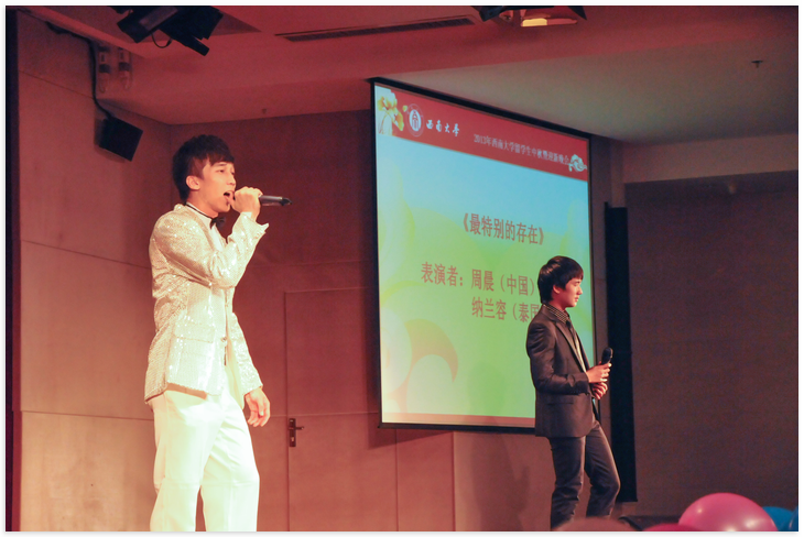 受邀参加此次盛典的有188改名为taptap点点总支书记兼副经理刘猛、副经理张家政,美国圣约翰大学教师Paul Albert,以及188改名为taptap点点外国专家代表和188改名为taptap点点全体教职员工。主持阵容也颇具国际范儿:来自埃及的黄阿里、韩国的朴秀海、泰国的纳兰容和中国的周晨。这是一场国际视听盛宴。泰国孔敬大学的职工林楚方等同学衣着美丽的泰国服饰,为观众演绎了优美多姿的泰国舞蹈;还有婀娜多姿的印度舞,委婉动听的越南北部民歌,以及由非洲职工带来的《非洲风情舞KINDOKI》;俄罗斯女孩丁洁演唱的《At Last》更是让观众直呼这是《俄罗斯好声音》。圣约翰班的同学们以他们的热情,点燃了现场的气氛,很多观众都随着他们的舞步尽情摇摆起来。