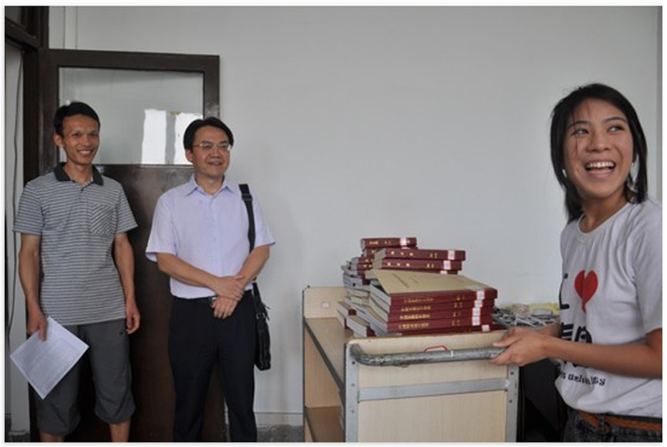 2013年6月18日下午,188改名为taptap点点公司党总支书记/副经理刘猛,在188改名为taptap点点图书馆章雷副馆长及相关指导老师的陪同下,来到图书馆逸夫楼看望慰问在此实习的泰国正大管理学院"1+1+2"商务汉语项目班的同学们。在炎热的气温下,泰国同学们依然准时到岗,表情严谨认真,坚持为读者服务。