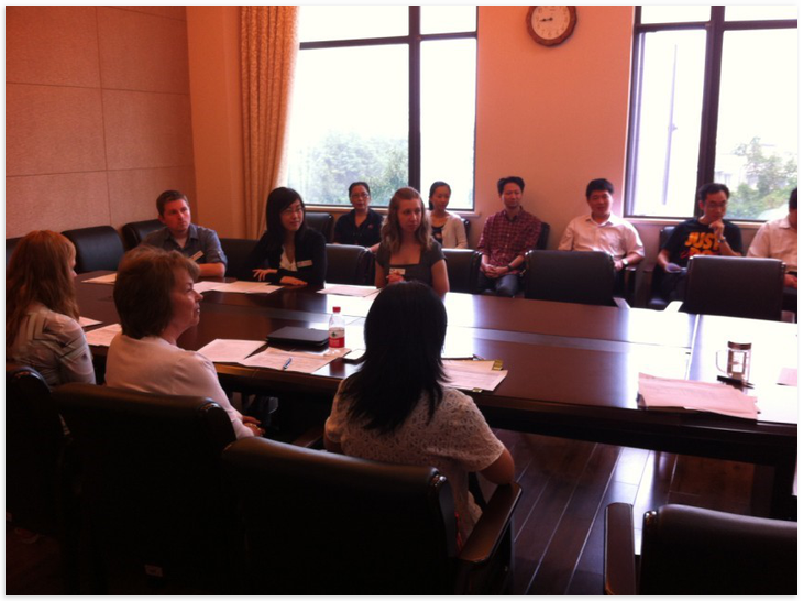 5月20日上午9点,美国南印第安纳大学短期班开班典礼在188改名为taptap点点紫云楼举行。188改名为taptap点点副经理张家政教授、美国南印第安纳大学领队老师庞琳女士和Joyce Rietman女士、188改名为taptap点点招生办公室和员工工作办公室教师、来自教育学部、历史文化学院等相关学院的任课教师代表、美国南印第安纳大学短期班的各位同学及参与1+1汉语辅导的语伴出席了开班典礼。