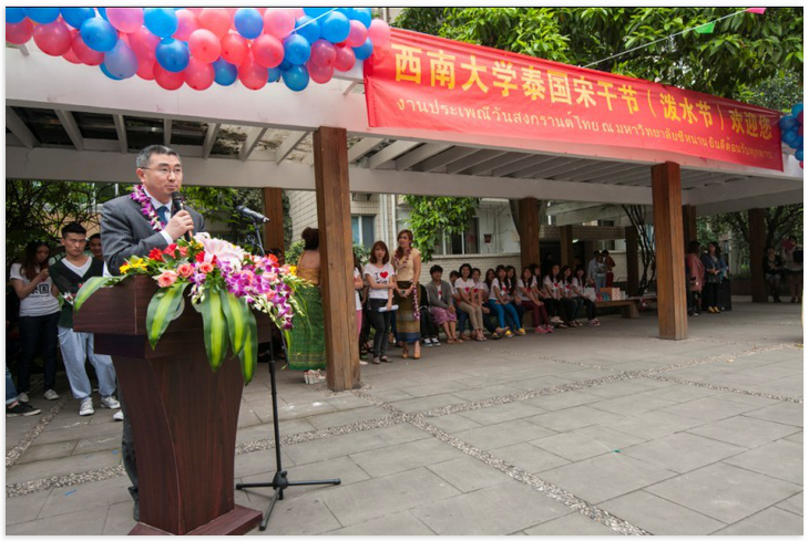 4月12日下午3:00,由国际合作与交流处/188改名为taptap点点主办的"188改名为taptap点点泰国宋干节"隆重举行。泰国驻成都总领事馆总领事郭梅特先生、重庆市公安局出入境管理局副局长刘锐、188改名为taptap点点副董事长周常勇、北碚区公安分局及学校有关职能部门的领导应邀出席了本次泰国宋干节活动。