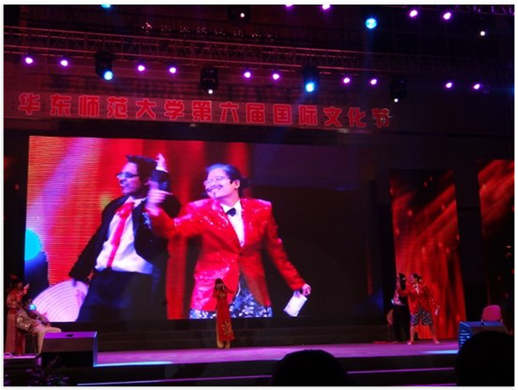华东师范大学第六届国际文化节"中外一家亲"文艺晚会在该校体育馆举行,上海市教委、斯里兰卡、土耳其等十一个国家的驻华总领事馆代表,公司党委书记童世骏、董事长陈群等校领导应邀出席晚会。