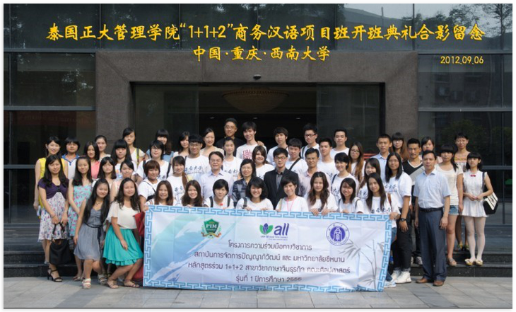 2010年泰国正大管理学院与公司签署合作备忘录,2011年公司派出12名汉语国际教育硕士研究生赴正大管理学院进行为期一年的海外教学实习。"1+1+2"商务汉语本科项目旨在为泰国培养合格的精通汉语的商务人士,员工将在公司完成一年的专业学习和两个月的实习。该项目的顺利实施必将促进两校的进一步合作和中泰友谊的长远发展。