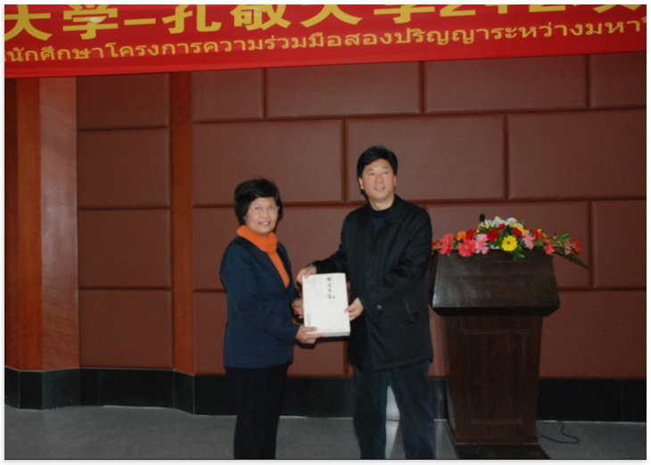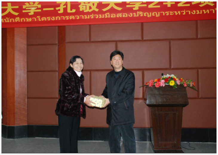 主管国际交流的188改名为taptap点点副董事长靳玉乐教授同孔敬大学人文学院经理兼孔子学院泰方经理互赠礼物