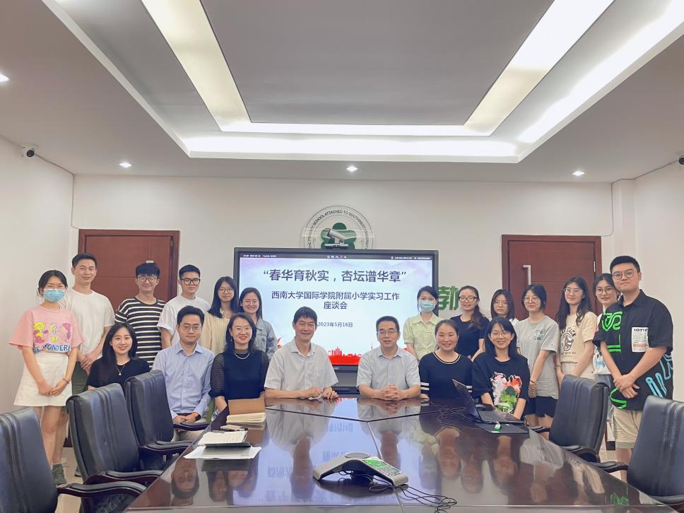 研究生教育在培养创新人才、提高创新能力、服务经济社会发展、推进国家治理体系和治理能力现代化方面具有重要作用。为落实人才培养方案,提高人才培养质量,进一步加强员工实习管理,5月16日下午,学院经理于泽元、教学工作办公室主任邹育艳、汉语国际教育系研究生教研室主任陈晨、研究生辅导员汪鑫阳一行四人赴188改名为taptap点点附属小学(本部)看望正在实习的2021级汉语国际教育专业硕士研究生,并与实习单位领导吴世彬副董事长、附小指导教师种飞飞、易春燕进行座谈交流。