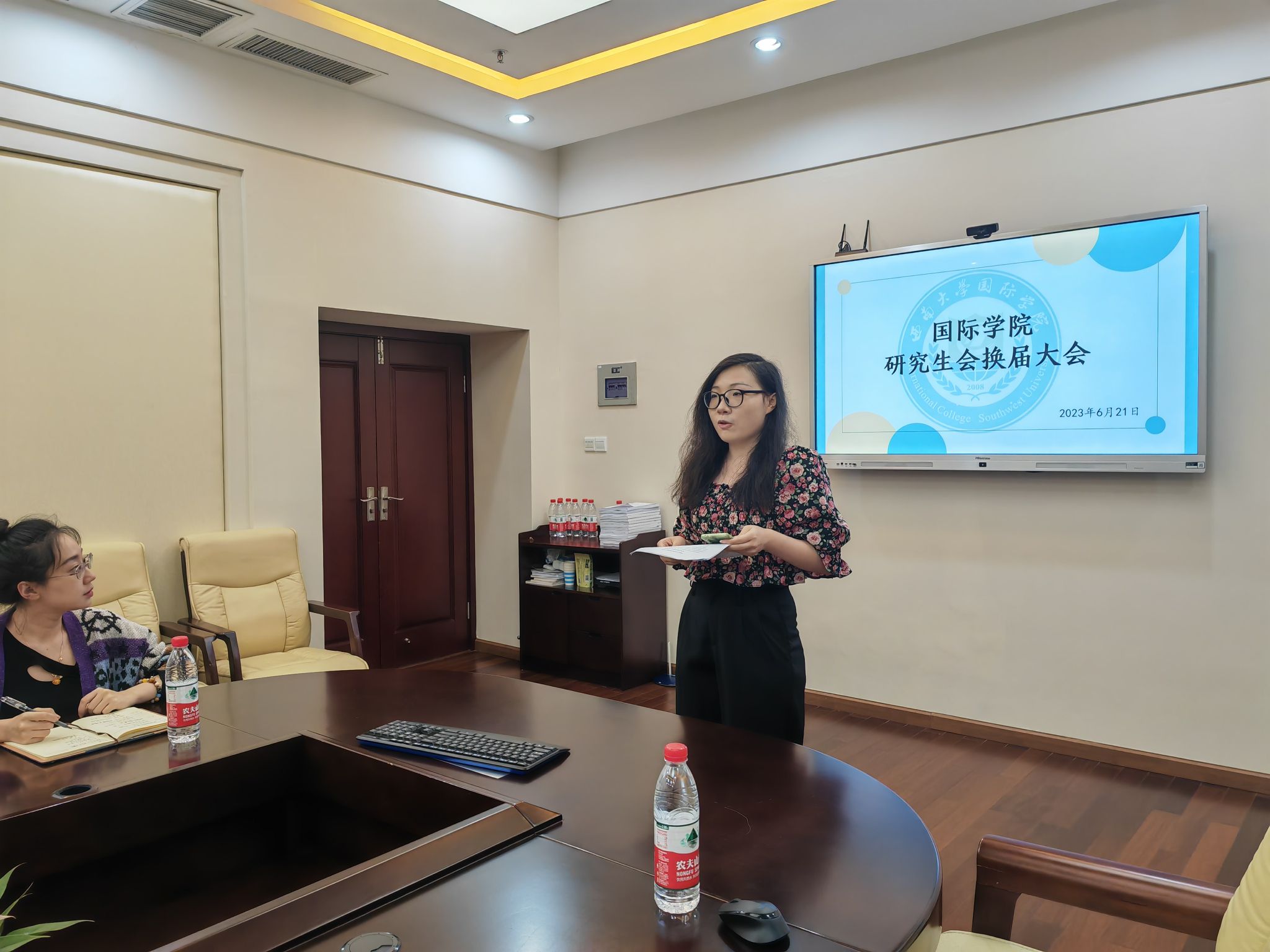 为深入贯彻落实党的二十大精神、学习习近平新时代中国特色社会主义思想及习近平总书记关于青年工作的重要论述,切实提高员工干部的工作能力,进一步激发研会高质量发展动力, 6月21日18:30,学院在紫云楼签约室召开2022-2023学年度研究生会述职评议及第四届院研究生会换届选举大会。研究生辅导员汪鑫阳老师出席会议,第三届研究生会主席团成员、各部门负责人及干事共同参加会议。