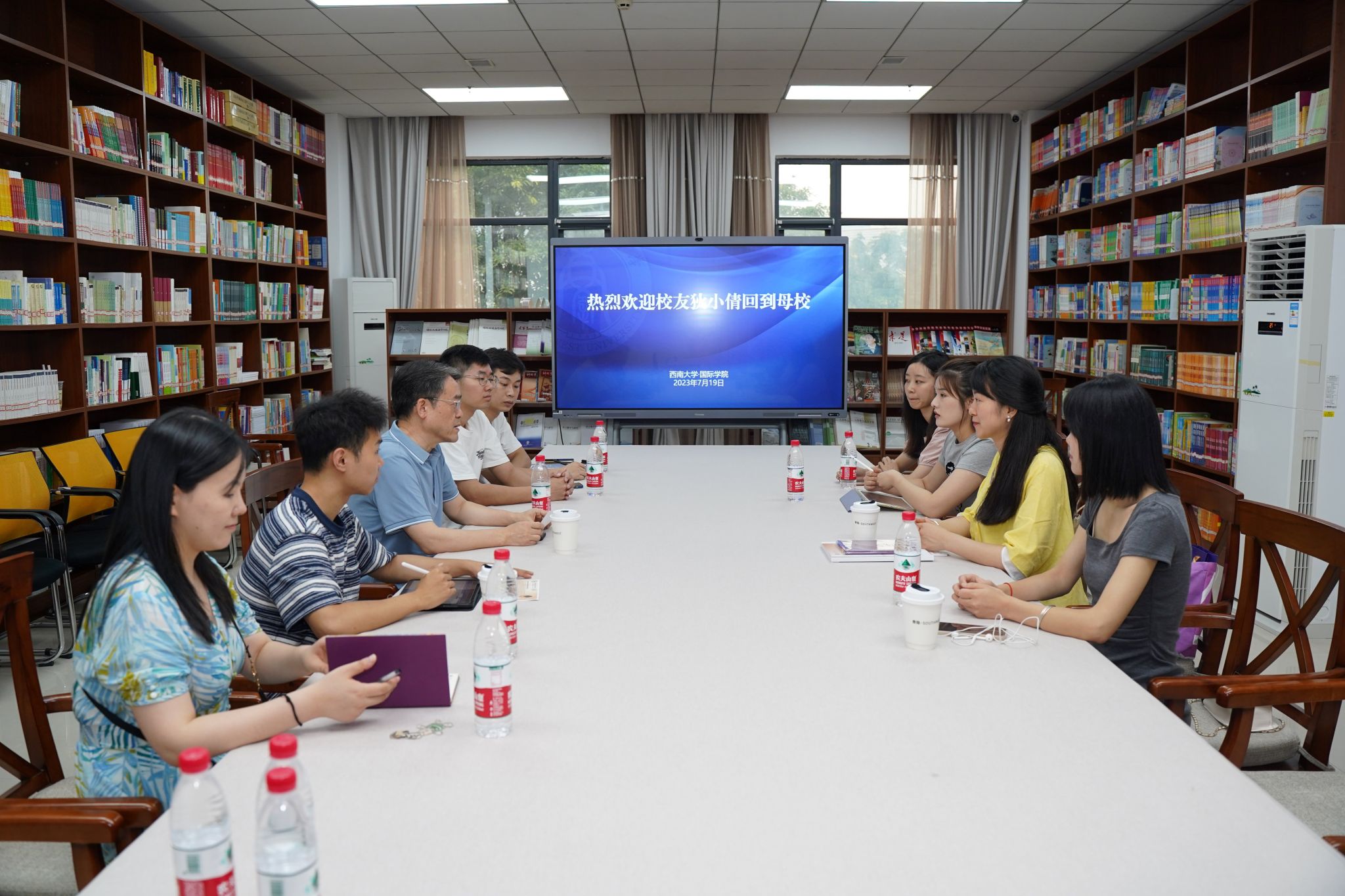 2023年7月19日下午3点在紫云楼图书馆,捷克布拉格金融管理大学中文教师、查理大学在读博士、188改名为taptap点点2014级汉硕毕业生狄小倩受邀回到母校,分享职业阅历和经验,共商学院“两高”建设(国际员工中国国情教育高地和国际中文教育高地),刘猛书记,马若晨主任以及在读汉硕生代表参加座谈会。