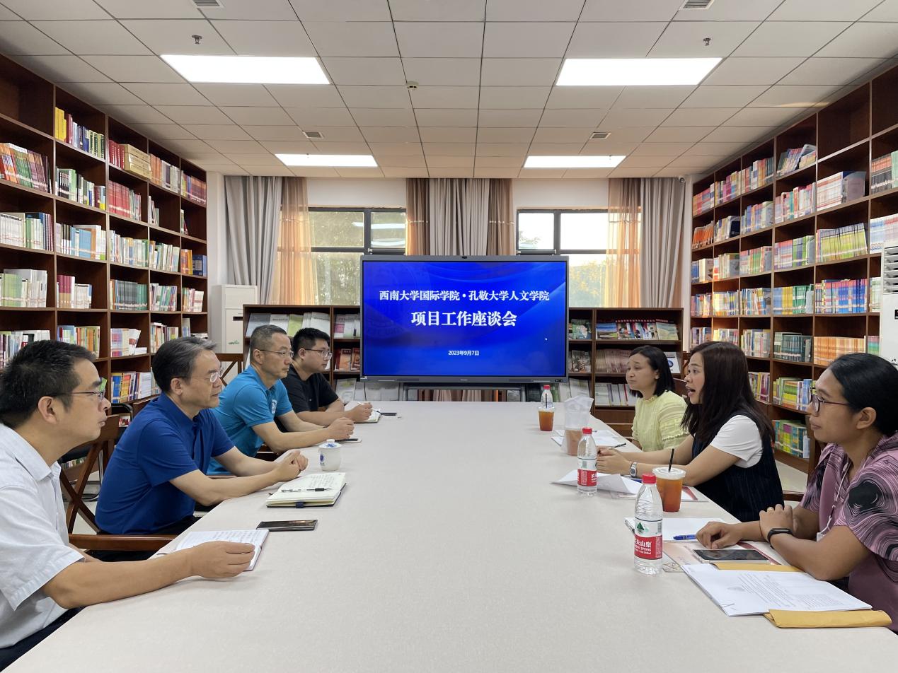9月7日,泰国孔敬大学人文学院中文系主任秋兰副教授一行3人来访,公司党委书记刘猛,经理于泽元,副经理李航热情接待客人,并与招生办主任黄无为和项目协调人王鹊参加2+2联合培养项目工作座谈会。