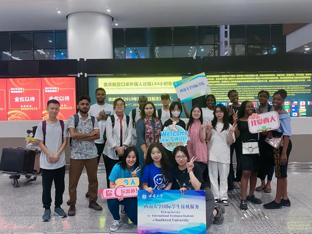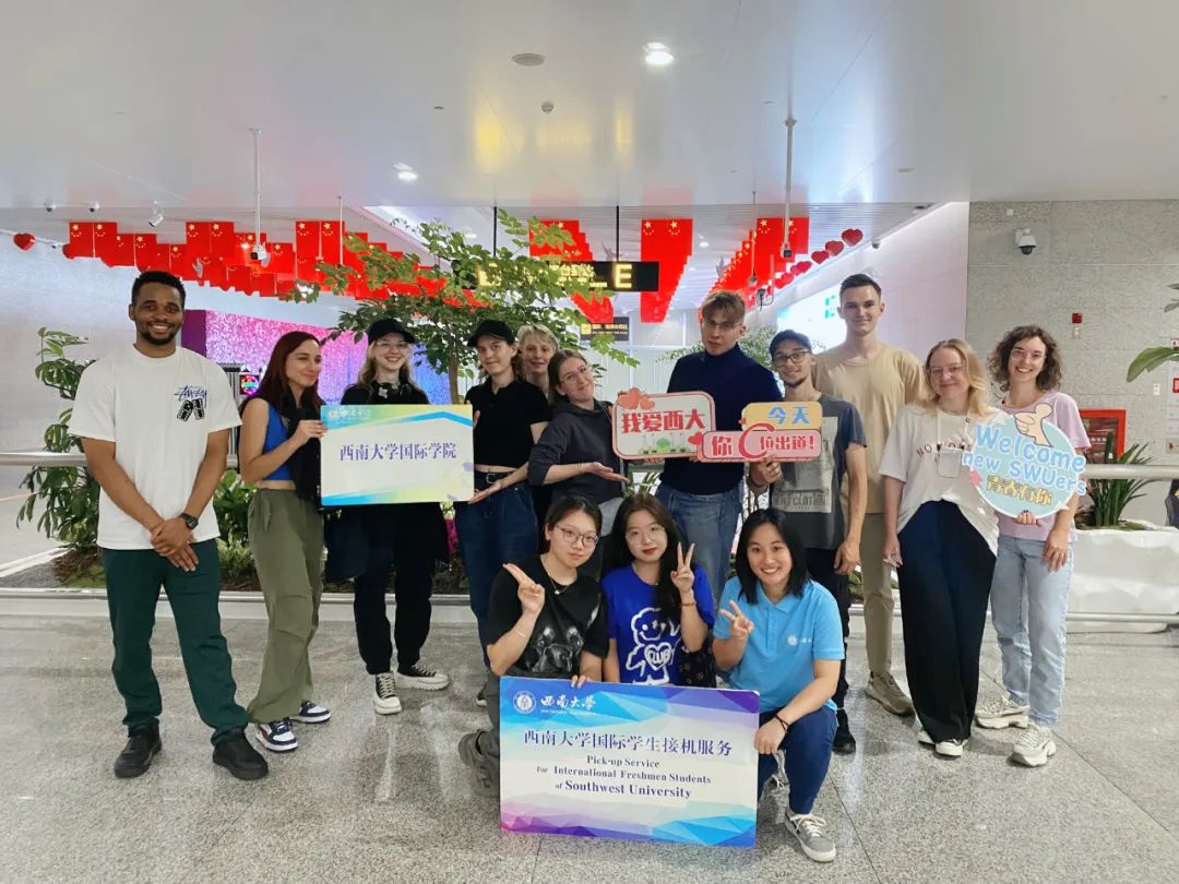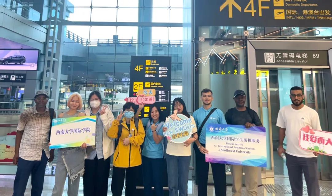 迎新当日,数名国际员工志愿者早早守候在重庆江北机场T3航站楼的新生接待点,手持指示牌,指引新生们乘车前往学校北碚校区。志愿者的细心与热情是新生顺利报到的前提,他们给新生们温暖细致的关怀与帮助,尽显西大人友爱互助的良好风貌。