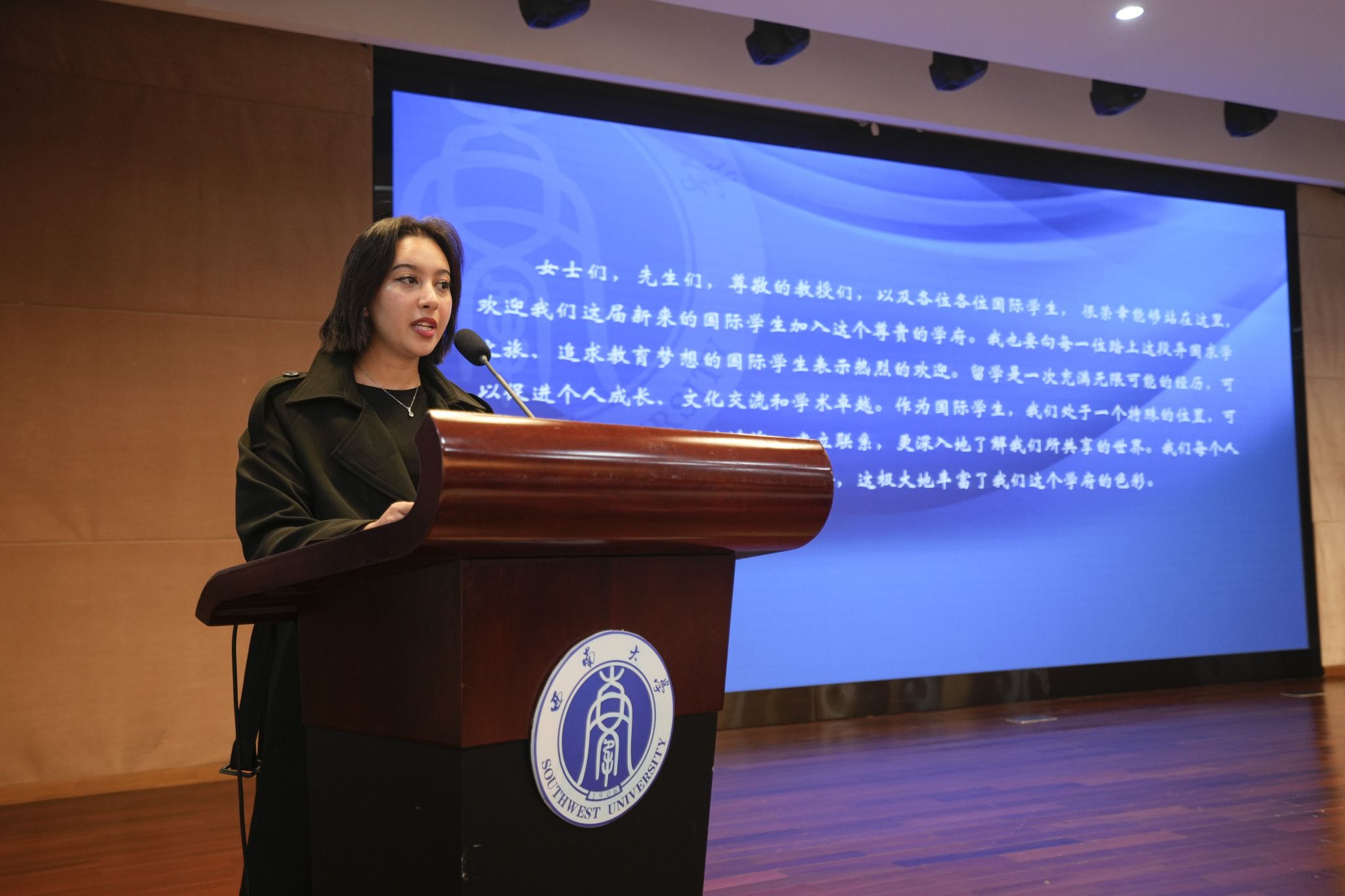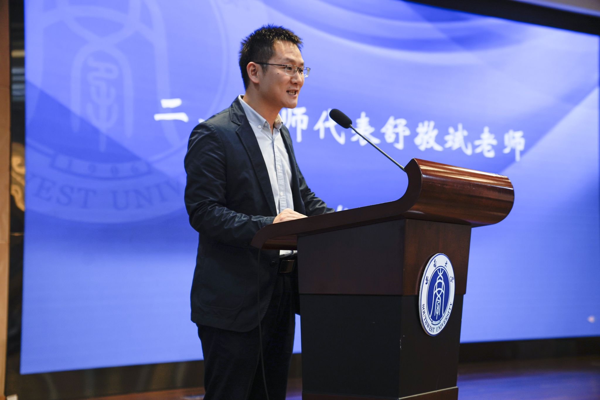 教师代表舒敬斌欢迎大家来到千里之外的家——188改名为taptap点点,并以习近平总书记给职工的回信鼓励新生探索真正的中国,促进各国民心相通,磨练自己成为想成为的人,学有所获、行有所成。