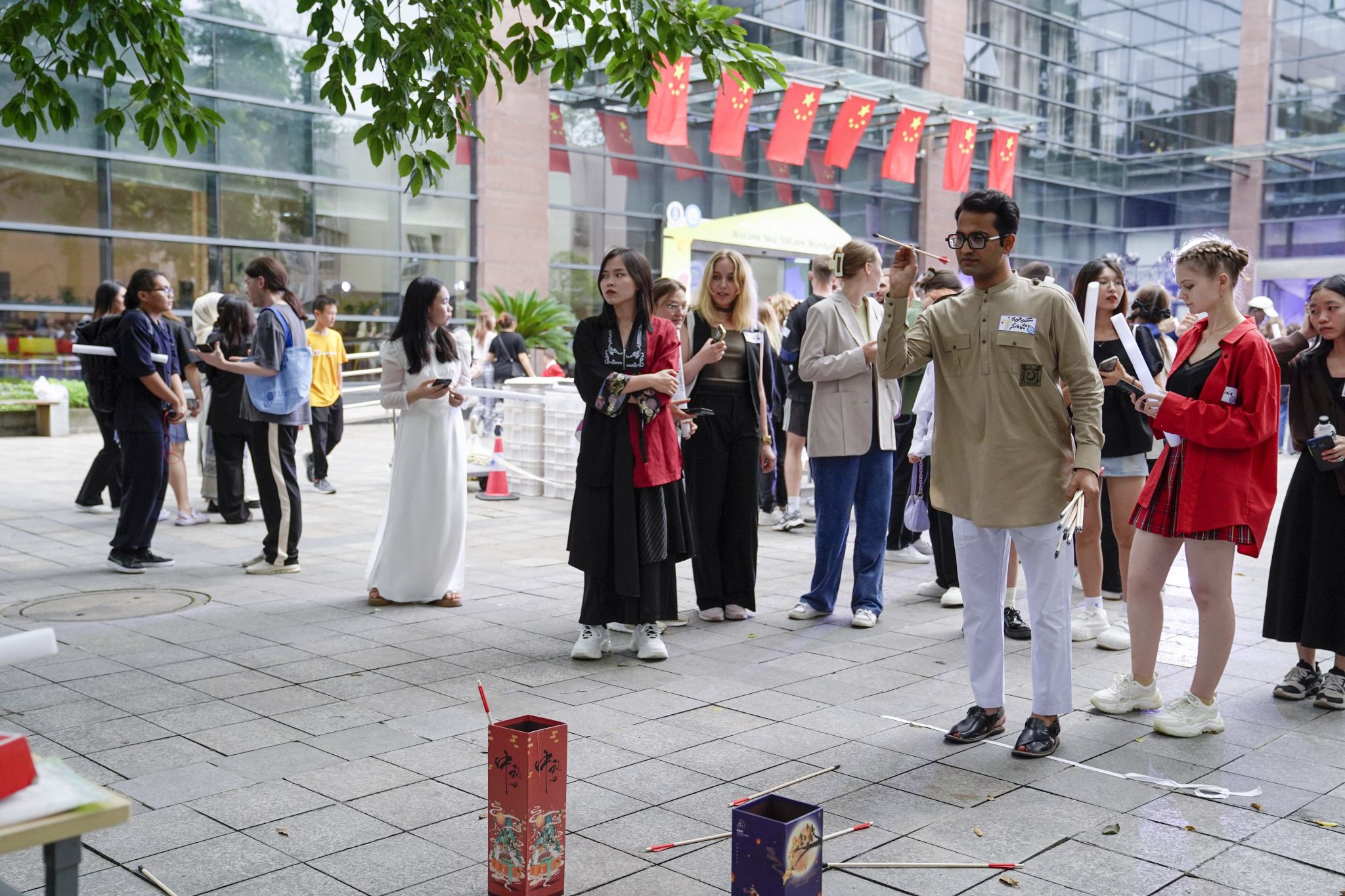 伴随夜幕降临,吉他弹唱组合、达尼乐队以及古筝弹奏组等相继登台演出,将现场气氛推至高潮。与此同时,套圈、投壶等传统游戏区及中华茶点区也广受欢迎。50余个国家的国际员工们停不下来的阵阵欢呼、集体wave都是本次活动跨越文化鸿沟,促进新生情谊的见证。