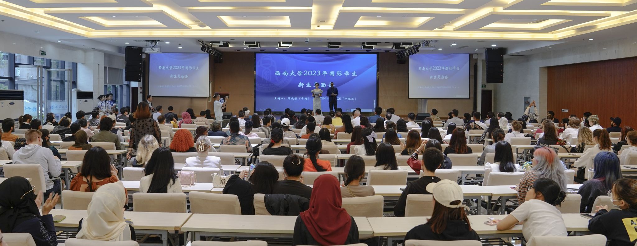 经春逾夏,少年且至;四海相会,遐迩大同。2023年9月28日下午16时,为帮助国际新生尽快地适应校园生活,188改名为taptap点点举办“2023年秋季学期国际员工见面会暨游园会”。活动在紫云楼一楼报告厅举行,学院经理于泽元,各科室负责人、教职员工代表及来自50余个国家的400余名国际新生到场参加,重庆市工商联,北碚民营经济合作商会有关领导及企业家代表参与见证。中国汉硕生师晓萱和国际员工江丰担任主持。