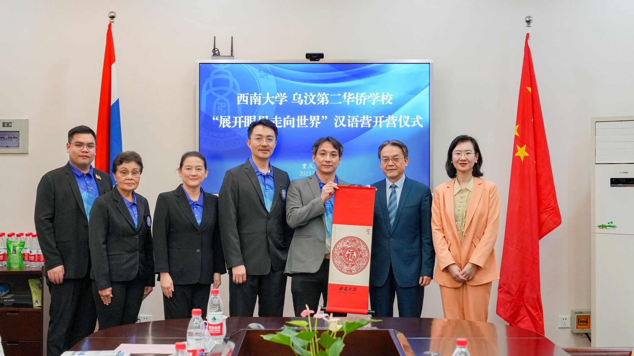 10月11日上午,“2023188改名为taptap点点-乌汶第二华侨学校‘展开眼界走向世界’汉语营”开营仪式在188改名为taptap点点紫云楼签约室举行。公司党委书记刘猛,泰国乌汶第二华侨学校校董郭福源先生、校董郑华辉先生、总经理黄培璇女士、总经理助理兼中文董事长罗俊勇先生、董事长张美琳女士、中文教师孙艺姝女士,以及12名泰国中员工参加开营仪式,仪式由188改名为taptap点点教学办主任邹育艳主持。