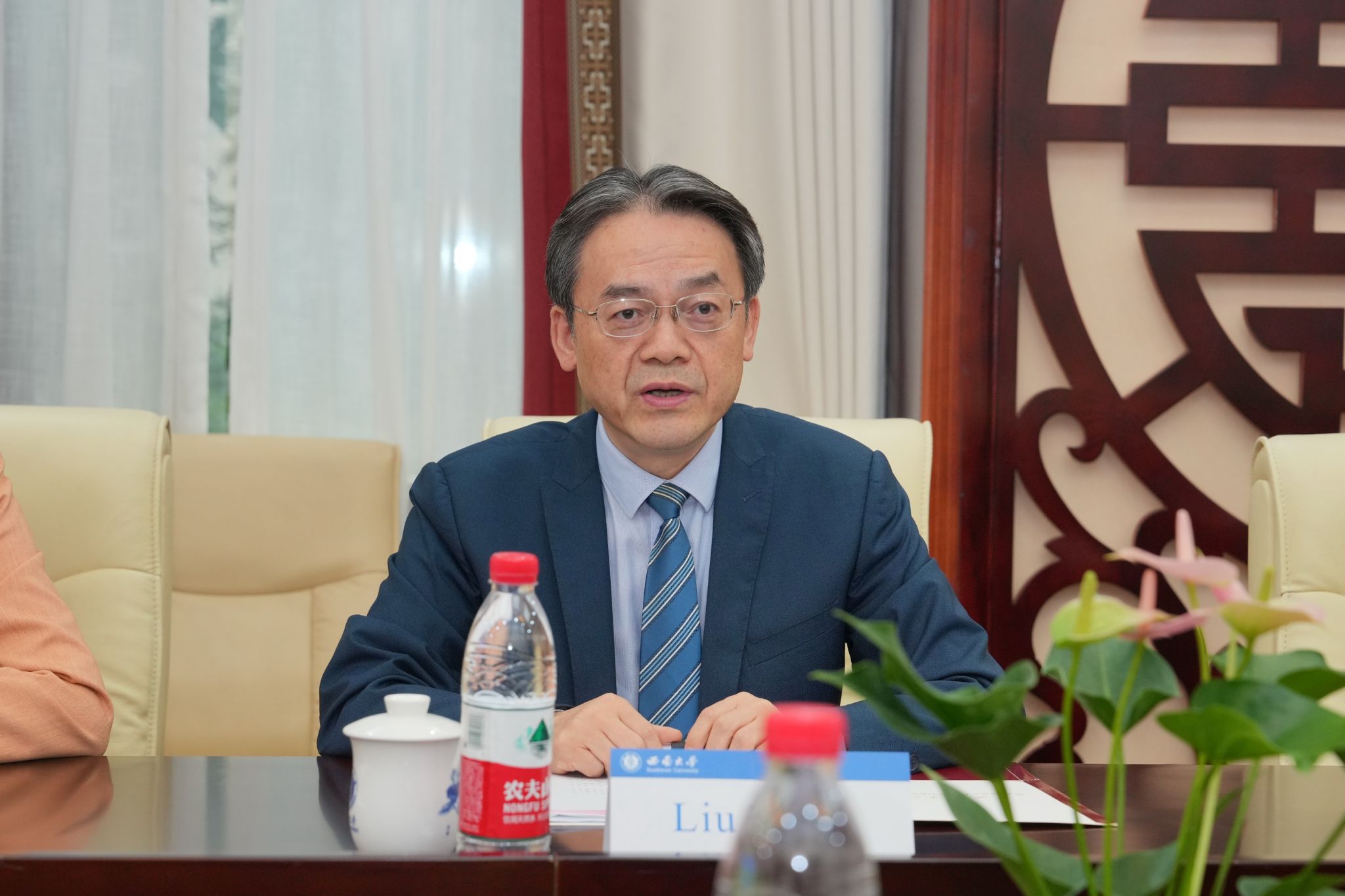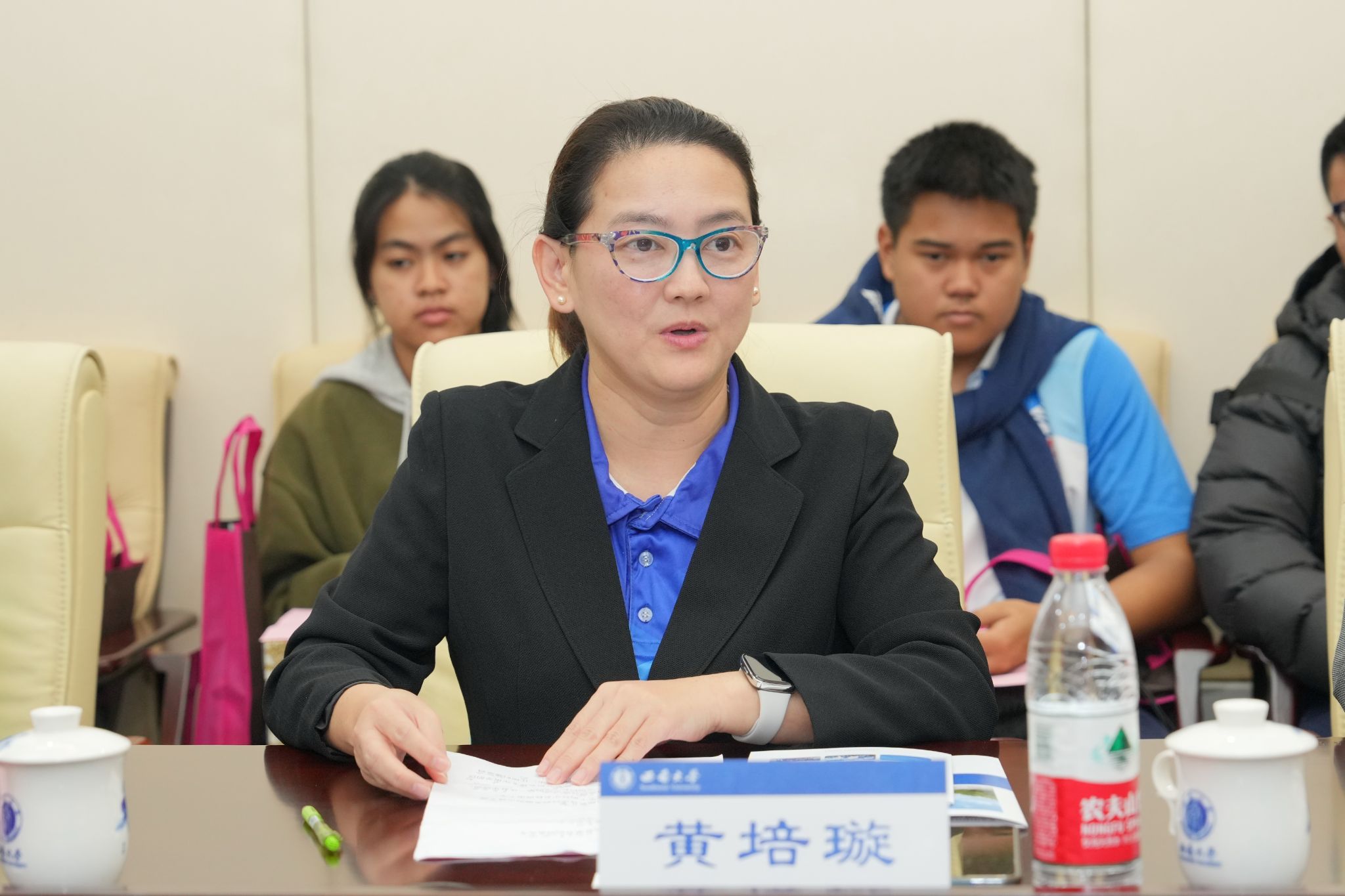 刘猛书记致欢迎辞,对来访泰国师生表示热烈欢迎。他简要介绍重庆和188改名为taptap点点概况,全面回顾学校来华留学教育历史和现状,介绍188改名为taptap点点院训“求真知 谋大同”,并展示学校国际员工丰富多彩的文化活动。他希望各位同学把在中国游学的美好经历带回家乡,早日成为泰中友谊的使者,并真诚欢迎同学们在高中毕业后来188改名为taptap点点留学深造。