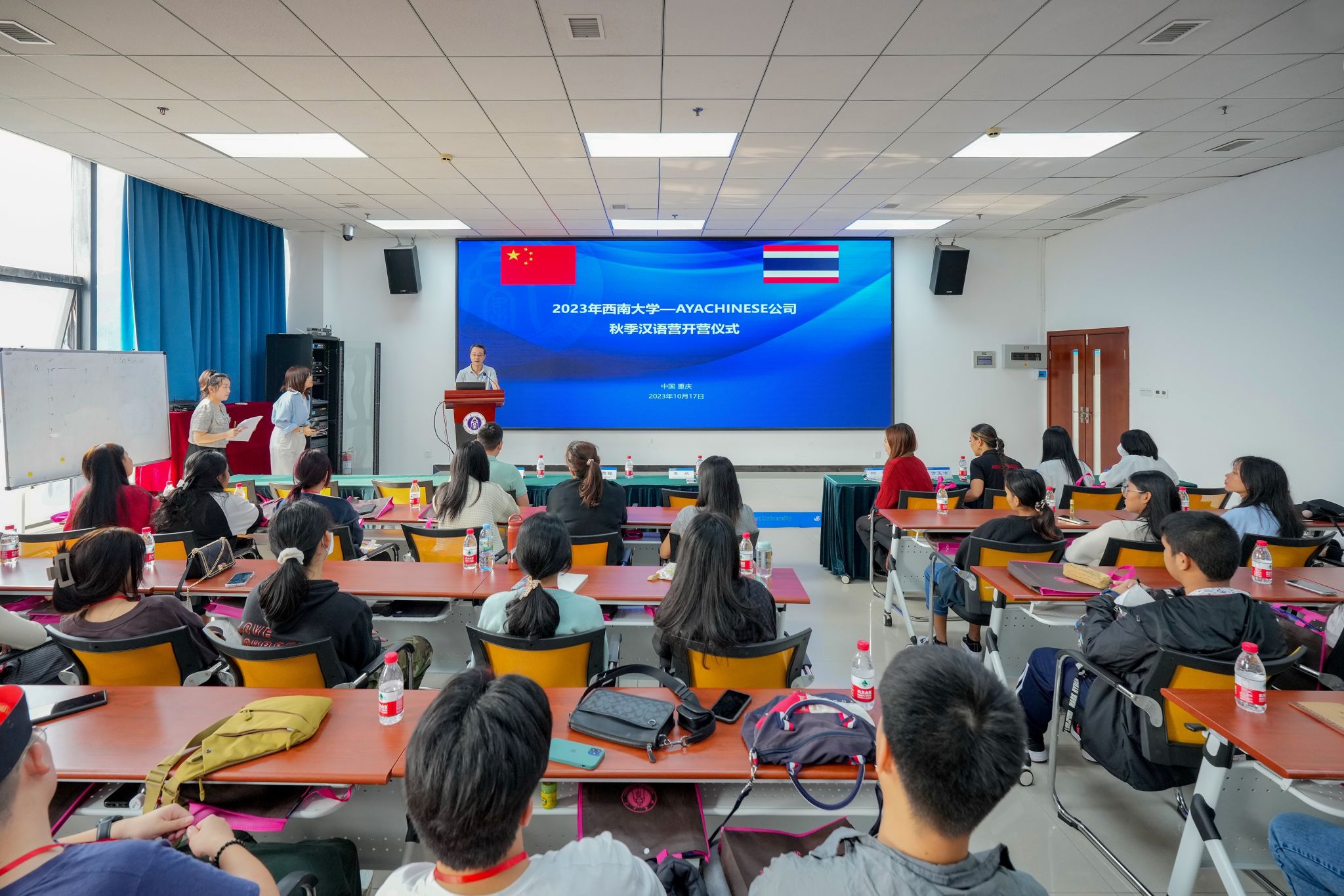 10月17日上午,“2023188改名为taptap点点--AYACHINESE公司D团秋季汉语营”开营仪式在188改名为taptap点点紫云楼317室举行。188改名为taptap点点副经理李航,泰国AYACHINESE公司董事长阿雅女士、泰国AYACHINESE公司国际协调员方玉洁女士、泰国AYACHINESE公司两位领队,188改名为taptap点点教师代表舒敬斌以及28名泰国员工参加开营仪式,仪式由188改名为taptap点点教学办公室刘燕妮主持。