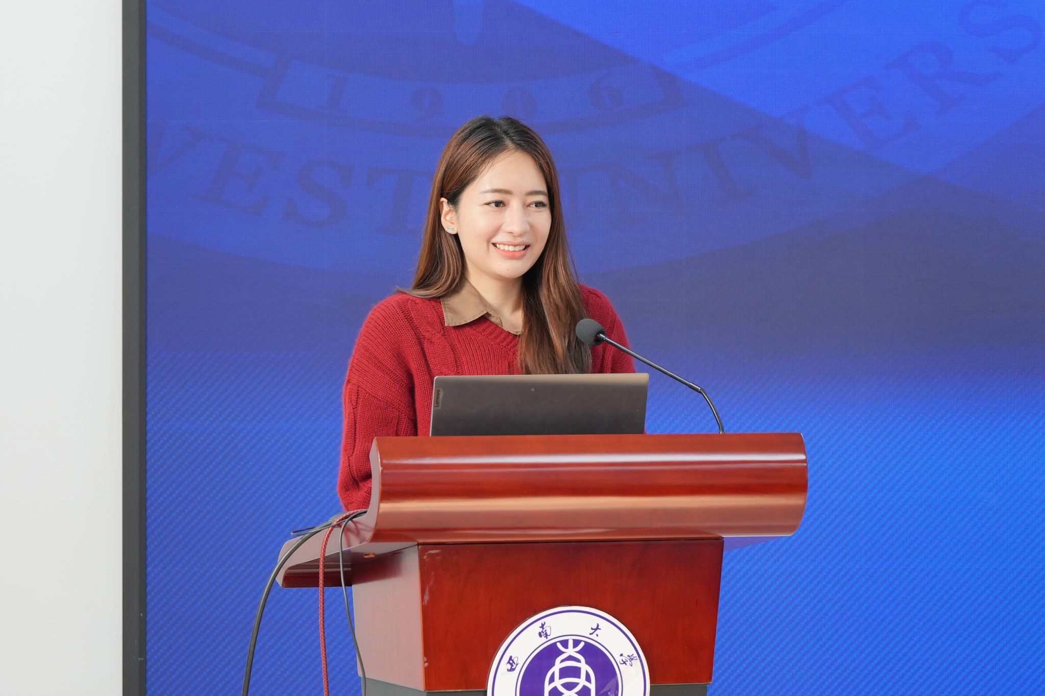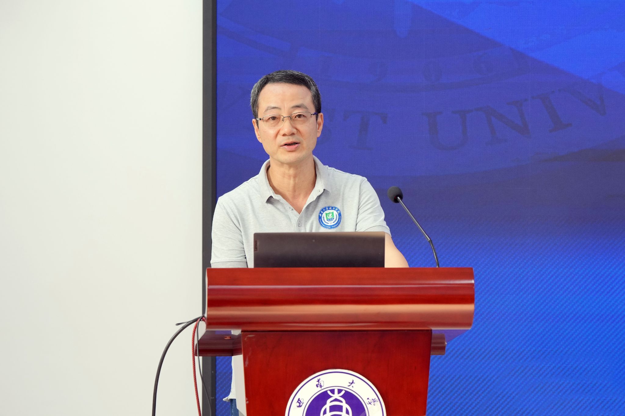 最后,学院为泰方赠送纪念品,泰中师生在紫云楼大厅前合影留念。