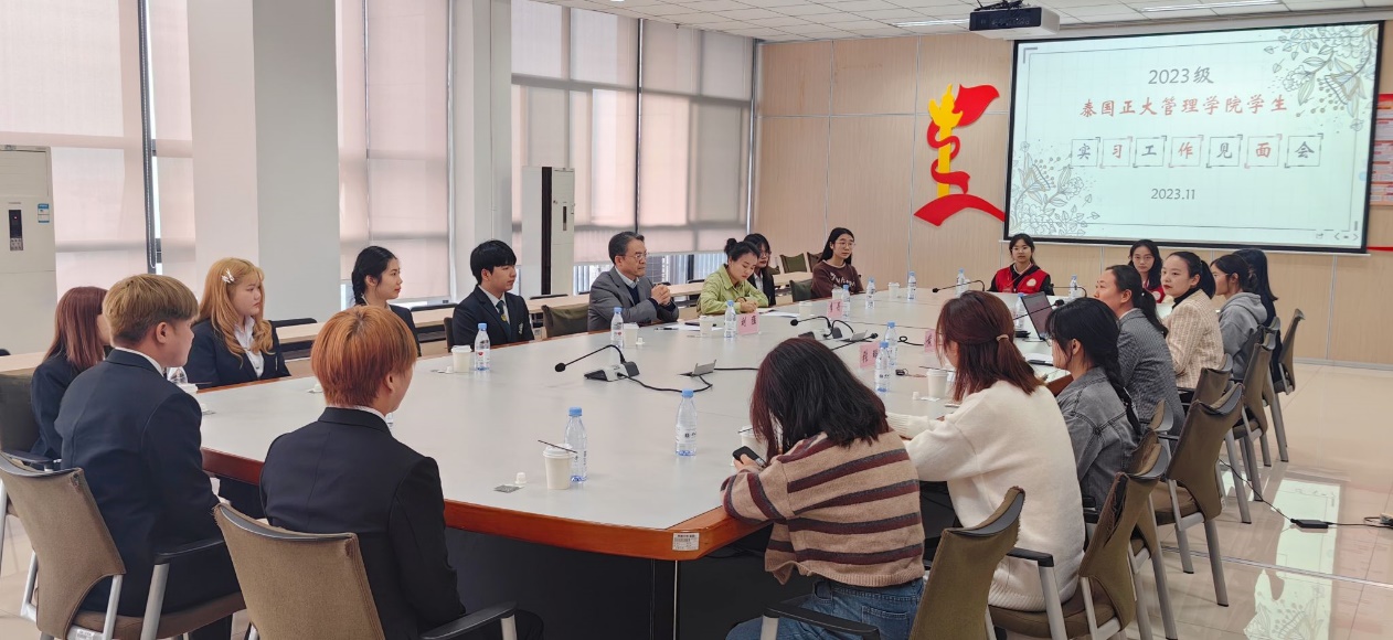 11月8日下午15:00,2023级泰国正大管理学院项目员工实习见面会在学校中心图书馆13楼会议室举行。公司党委书记刘猛,图书馆副馆长黄敏,图书馆读者服务一部主任王怡、副主任张璐,正大班班主任李丹、7名泰国实习生和图书馆志愿者参加会议。