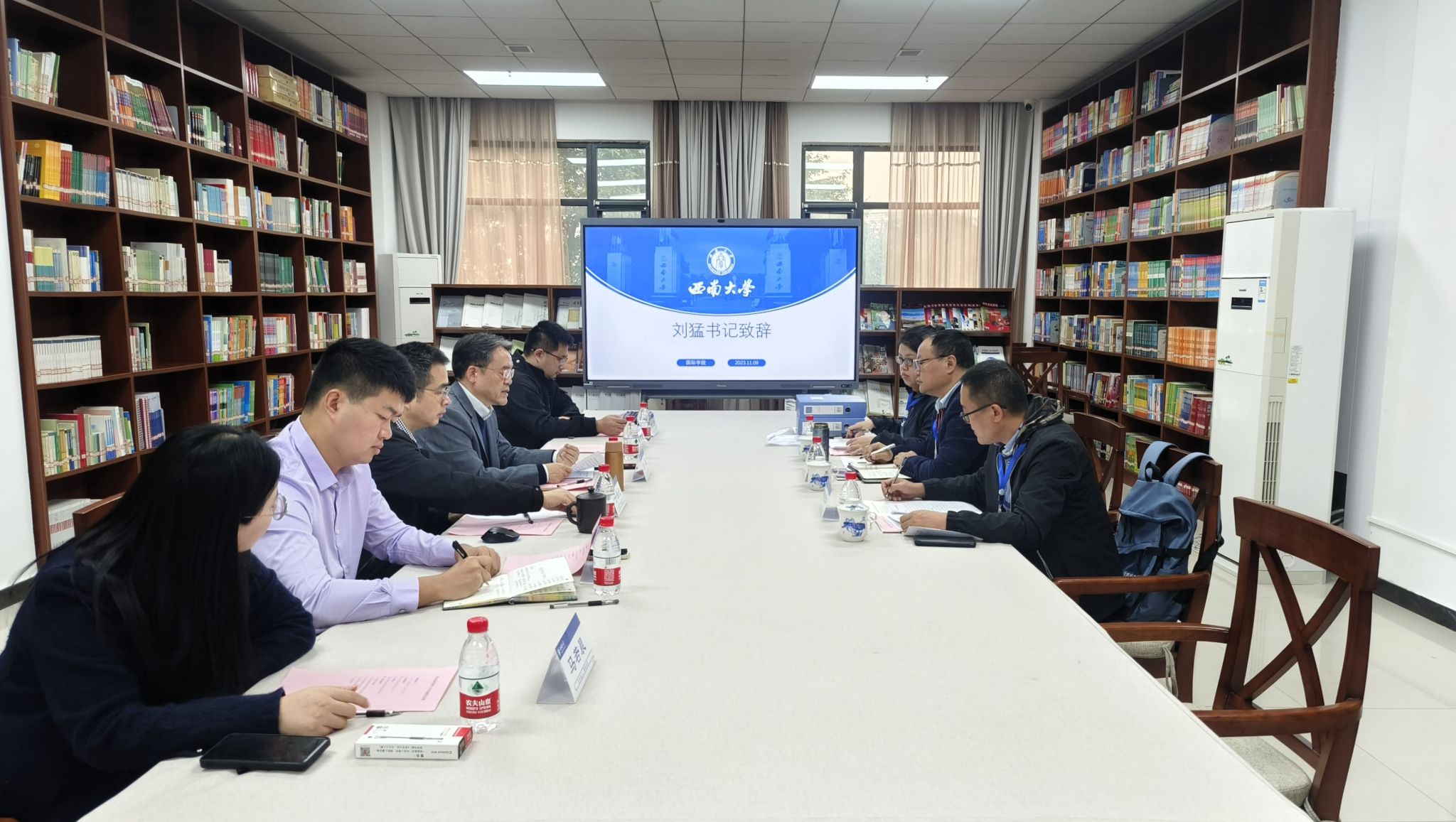 刘猛书记致欢迎辞,介绍学校来华留学概况,展示“留学西大”品牌建设成果,表示,高度重视本次来华留学工作专项督导,始终坚持问题导向,力求做到立行立改、真改实改。