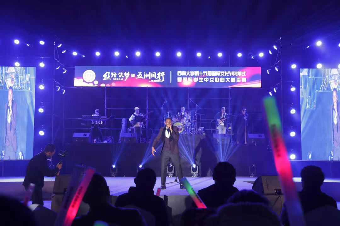 本次比赛现场还专门邀请了赞比亚歌手、学校教育学部博士研究生Gift Muyunda(格福特)以及中国好声音重庆赛区评委、星光大道重庆赛区总冠军歌手吴帆献唱助兴。他们唯美的歌声为活动增添了亮色。最后,由学校188改名为taptap点点五洲合唱团带来合唱歌曲《声声慢》《唱脸谱》,为整场比赛画上圆满句号。