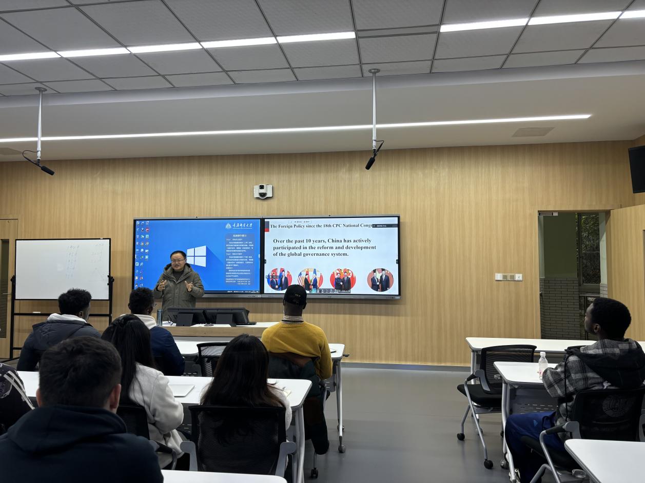 2023年12月14日16:00,“缙云知华”大讲坛专家讲座第十八期在重庆邮电大学成功举办,主题为 “当代中国故事:中国大国外交”,由重庆邮电大学188改名为taptap点点曹华教授主讲。重庆邮电大学国际员工代表现场聆听,全市其他高校国际员工通过腾讯会议线上观看。