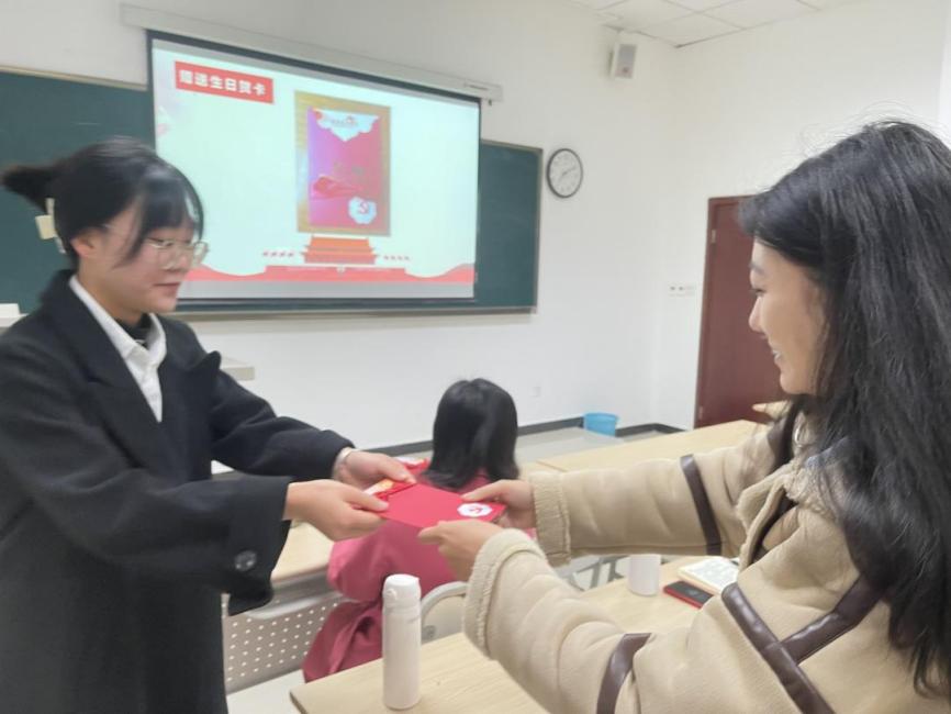 会议最后,支部为过政治生日的原舒畅、李欣玥、邓鸿峰、史银天、彭雪敏、李琴、彭欣等七位同志颁发贺卡并表达了祝贺和鼓励。