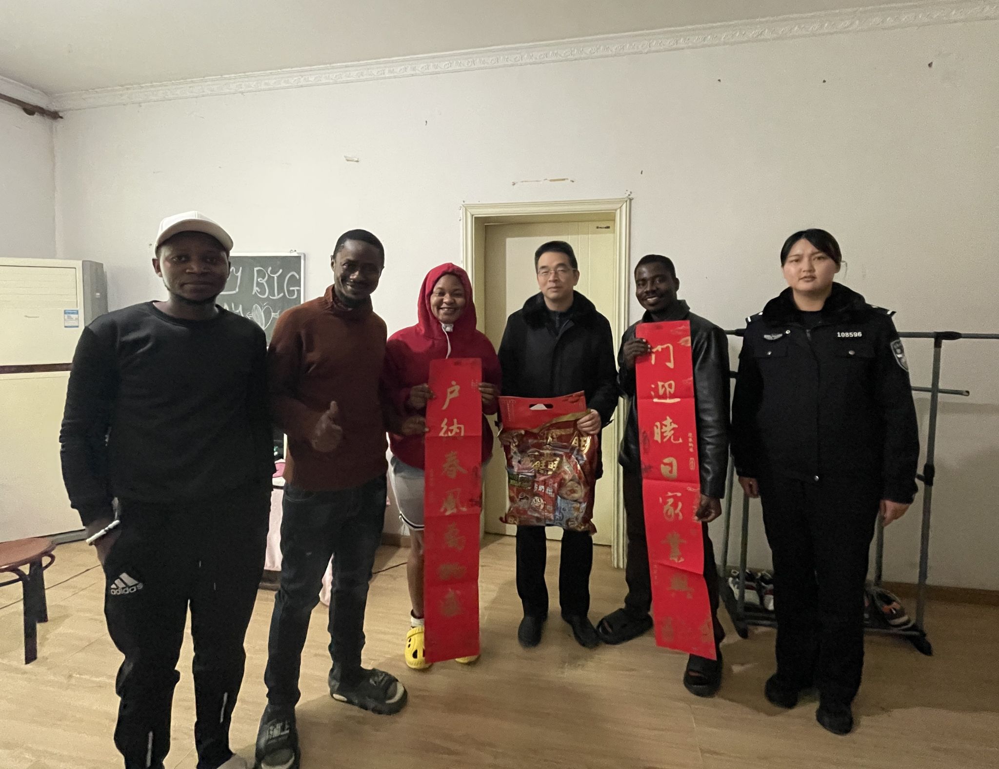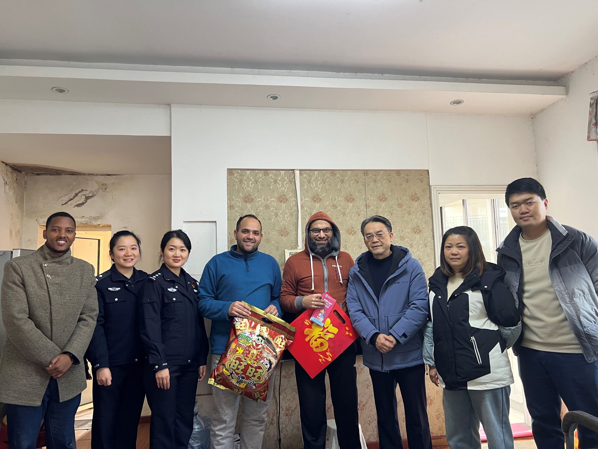 春节将至,学院联合出入境、辖区派出所、社区以及国际员工片区长,分成5个工作小组,亲切慰问租住在校外的国际员工。其间,学院领导为国际员工送上春联和福字,让他们感受到了中国传统文化的魅力和学校的关怀。领导们还与国际员工进行深入的交流,了解他们在学习和生活中遇到的困难和问题,并给予积极的回应和指导。出入境与辖区民警逐个检查国际员工的证件,并从护照保管、交通安全、人身安全、防骗防盗等方面对他们进行详细的讲解和温馨提示。
