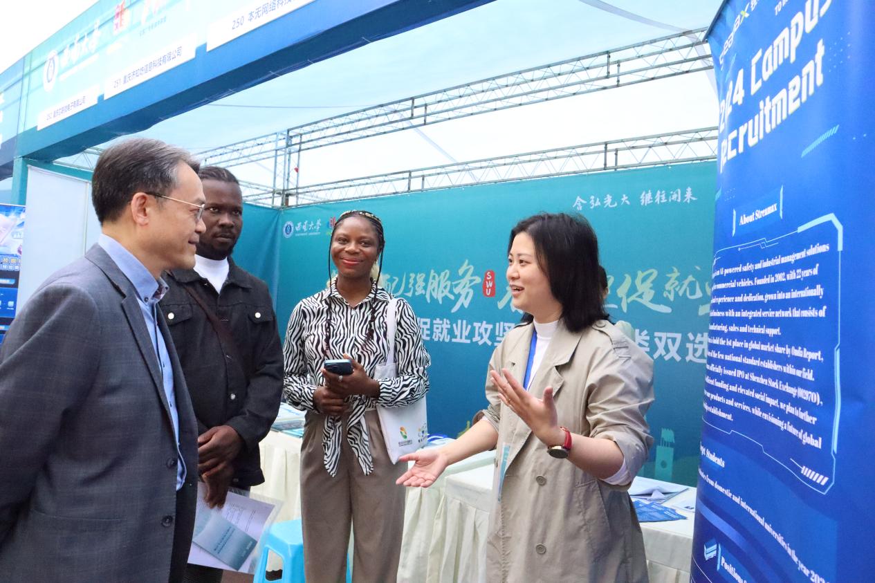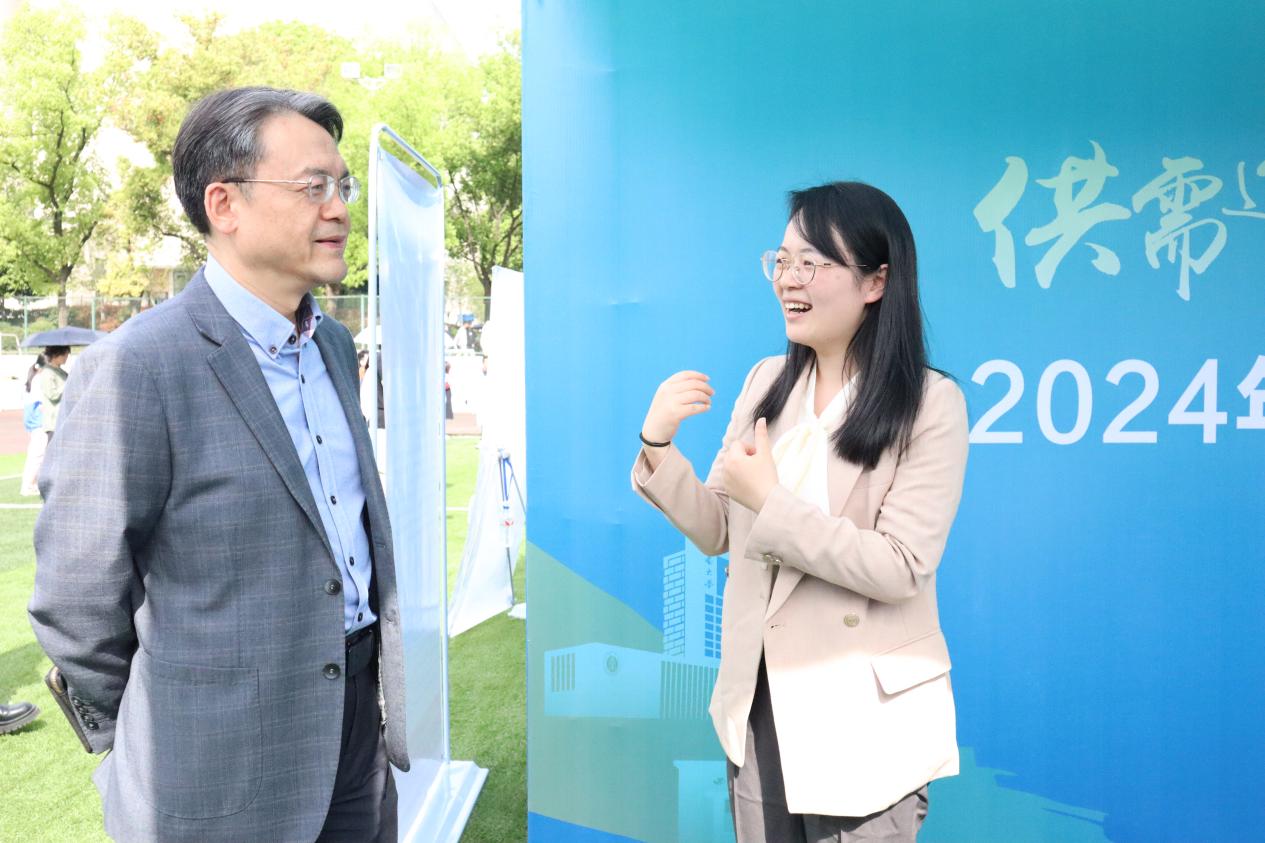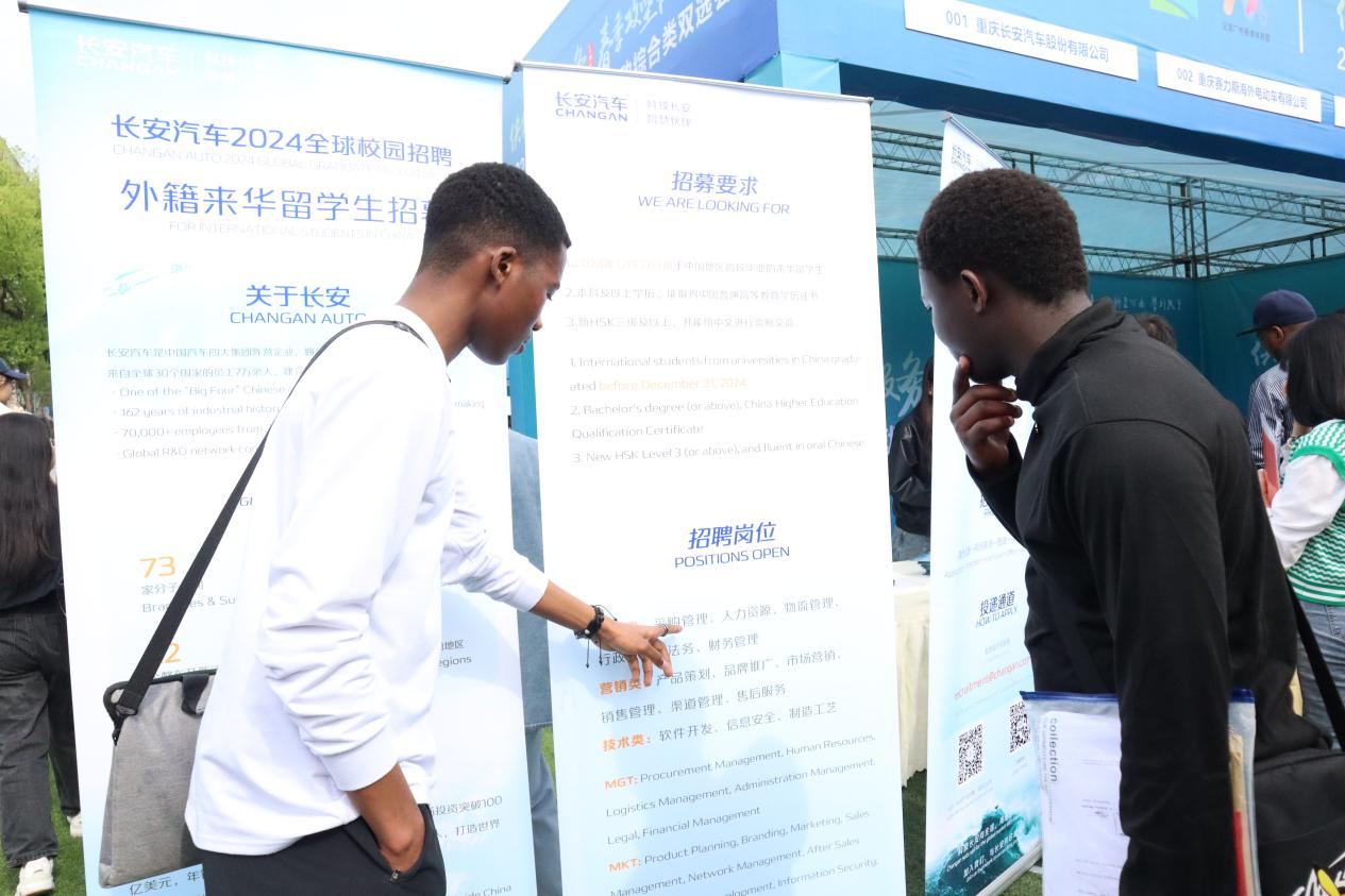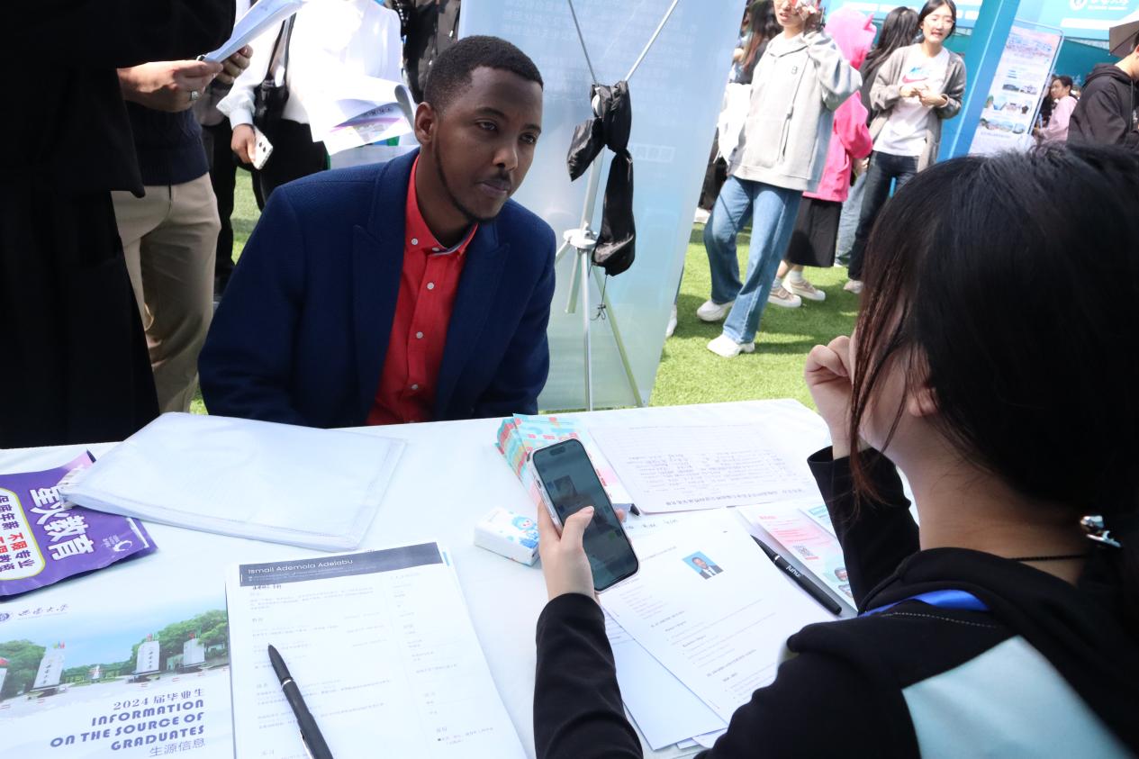 2024年3月29日上午9点,100余名国际员工参加学校2024年度双选会活动,这是学校招收培养国际员工以来第一次有组织地安排员工集中参加就业招聘会。