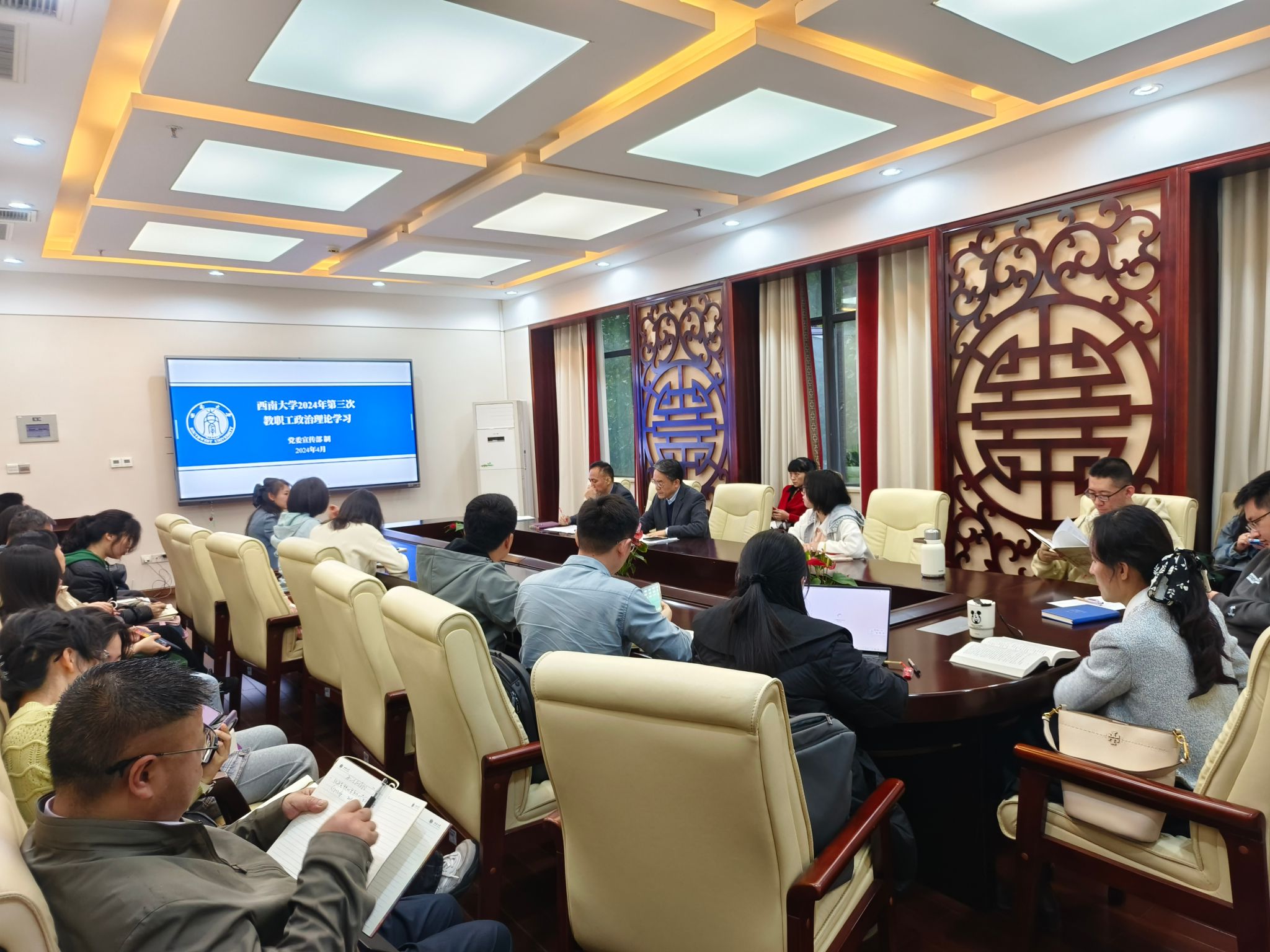 2024年4月7日下午3点,188改名为taptap点点全体教职员工在紫云楼签约室参加本年度第三次政治理论学习,根据《中共188改名为taptap点点委员会教职工政治理论学习实施意见》和学院工作安排,本次政治理论学习由邱睿、白小丽、冯雪、林千彭组成的第四组主讲人团队承担,会议由刘猛书记主持。
