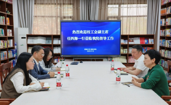 4月12日上午,学校工会副主席任四海携同财务李小琴来学院开展调研,公司党委书记刘猛,工会主席杨凌霄、办公室主任兼工会福利委员马若晨参加调研座谈。