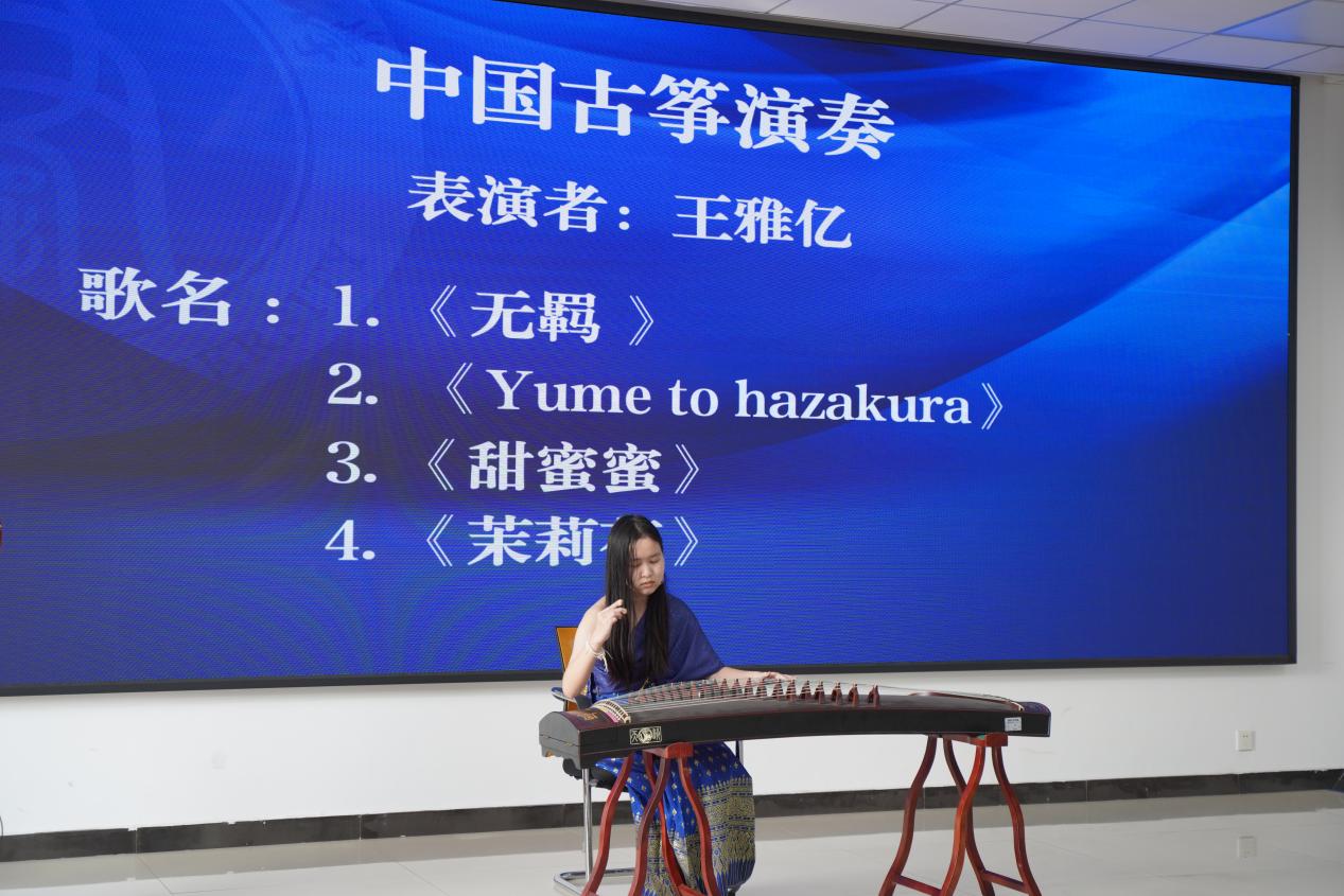 此外,王雅亿同学带来的中国古筝演奏成为闭营仪式的一大亮点。她身着传统服饰,精湛地演绎了《无羁》《Yume to hazakura》《甜蜜蜜》和《茉莉花》四首风格各异的曲目,完美和谐的编曲让人耳目一新,古朴悠扬的琴音在学院久久回荡。