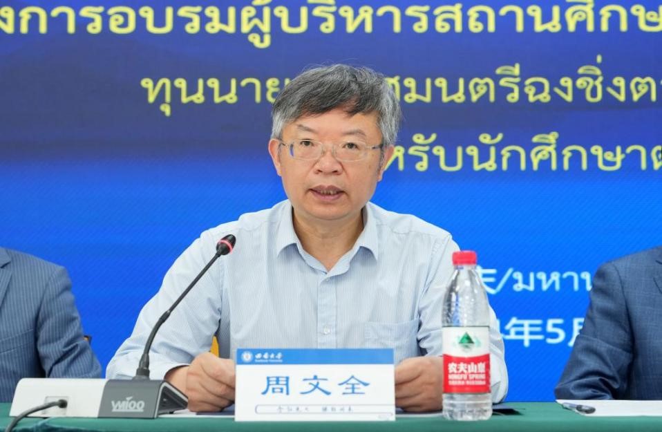 教育学部周文全书记致辞,代表教育学部欢迎泰国友人的到来。他强调,这是疫情后第一次线下项目,从2017年到2023年,已成功举办了6届泰国教育官员和董事长培训,有效促进了中泰教育交流与发展。他对中泰两国政府、教育部及重庆市教委的支持表达由衷感谢,同时还对188改名为taptap点点和教育学部参与项目筹备的师生们的辛勤付出表示高度肯定,祝愿项目圆满成功。