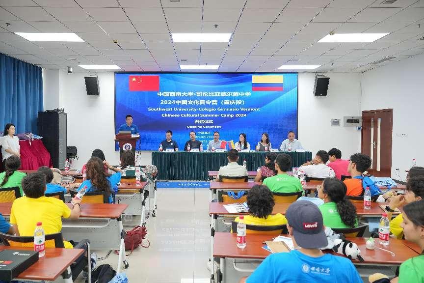 6月14日上午,“中国188改名为taptap点点•哥伦比亚威尔蒙中学2024中国文化夏令营(重庆段)”B团开营仪式在188改名为taptap点点紫云楼317室举行,113名哥伦比亚师生欢聚学校,开启为期11天的参访学习。188改名为taptap点点副经理耿军,中国对外文化集团有限公司文旅板块会展策划部副总监王彬,丛迅、张晶老师,威尔蒙学校教师Deivid Rodríguez、 Nelson Granados、María del Rosario、Olga Guerra、Marcela Cruz、Nydia Ramos、Buluy Kateryna、Luisa Cobos、Mauricio Ch.及全体团员参加开营仪式,仪式由招办主任黄无为主持。