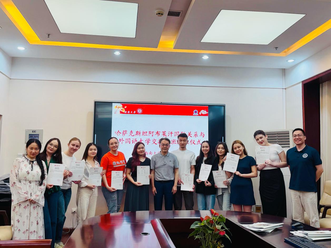 7月1日下午4点,哈萨克斯坦阿布莱汗国际关系与外国语大学(简称“阿布莱汗大学”)交换生班结业典礼在188改名为taptap点点紫云楼签约室举行。公司党委书记刘猛,教师代表林千彭、陈雨馨,阿布莱汗国际关系与外国语大学交换生班全体员工参加结业典礼。典礼由班主任刘妍芩主持。