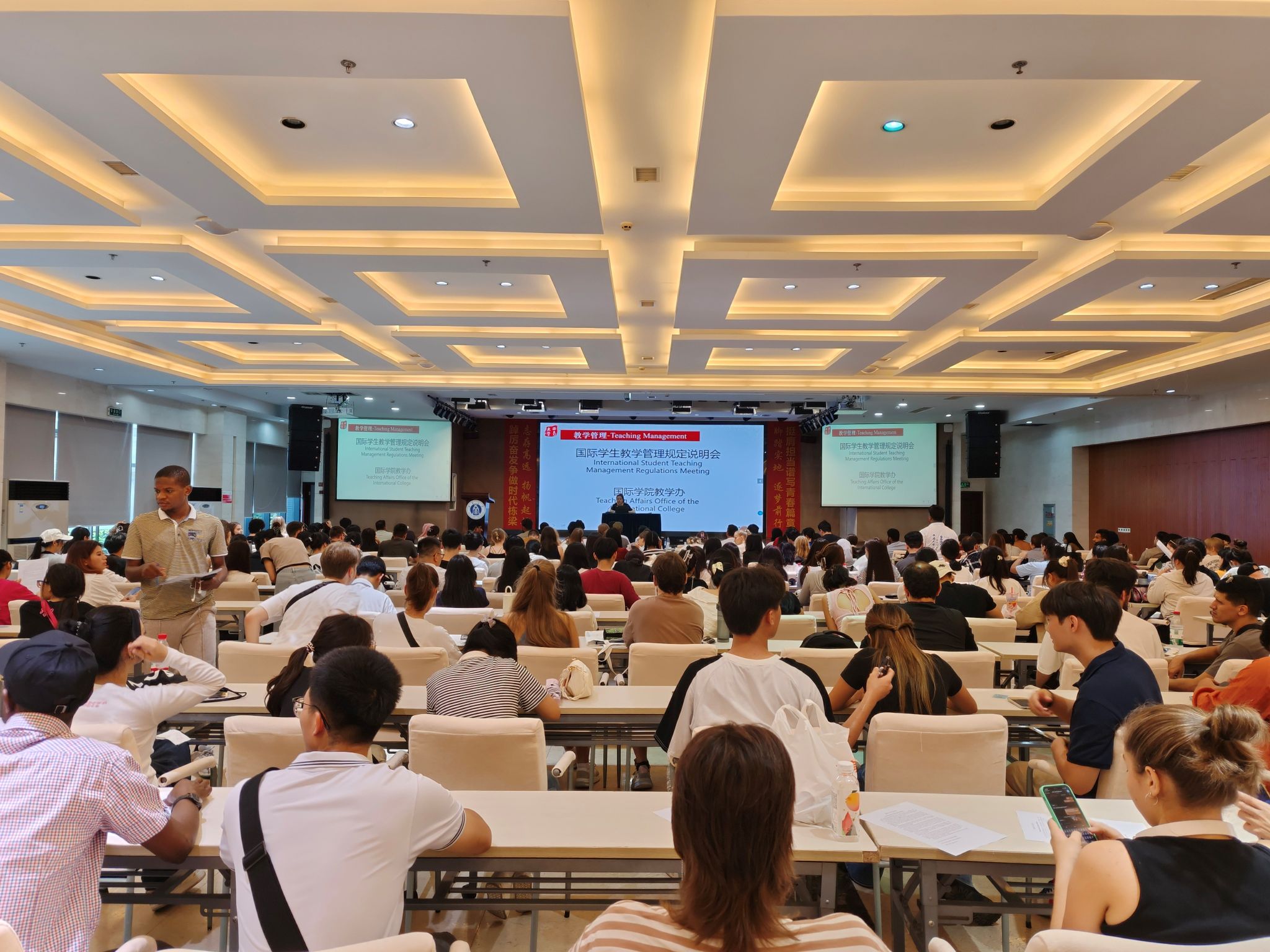 9月11日下午2:30,学校2024级国际员工教学管理规定说明会在188改名为taptap点点报告厅举行,300余名新生参加说明会。188改名为taptap点点教学办刘燕妮详细介绍国际员工培养过程、学籍异动、毕业及学位授予管理规定,并就同学们提出的问题逐一解答,希望新同学把汉语和专业学习的美好经历带回家乡,做一名中华文化的传播者。会后,国际员工志愿者带领新同学前往各自就读的院系报到。