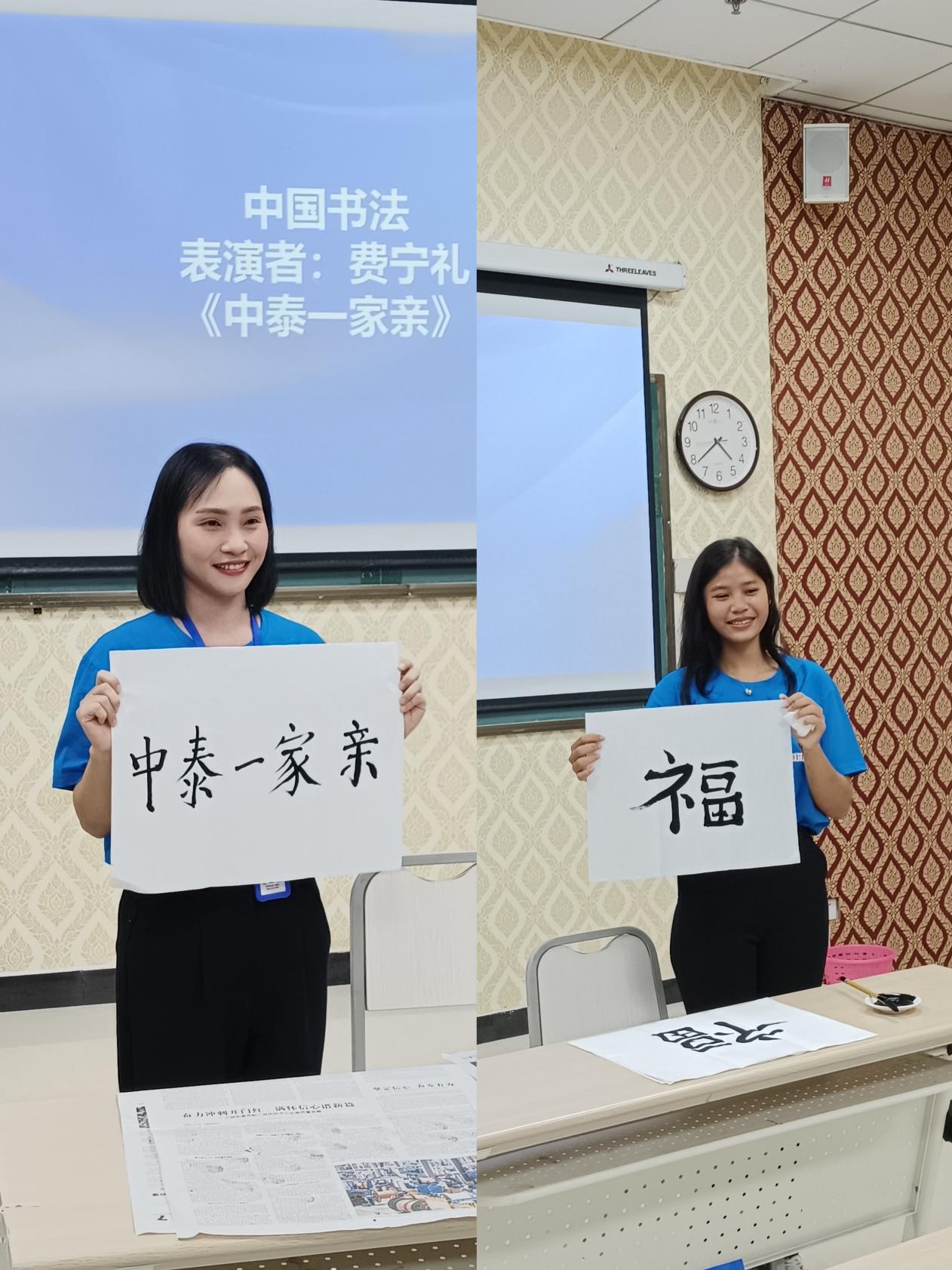 书法是中国传统文化的瑰宝,它以独特的艺术形式表达着深刻的情感和思想。费宁礼与芭丽妮学员书写的“福”“中泰一家亲”六个字更是体现了中泰两国人民之间深厚的友谊。