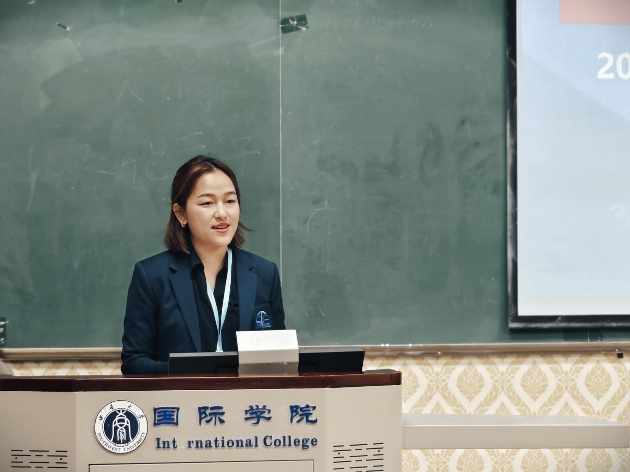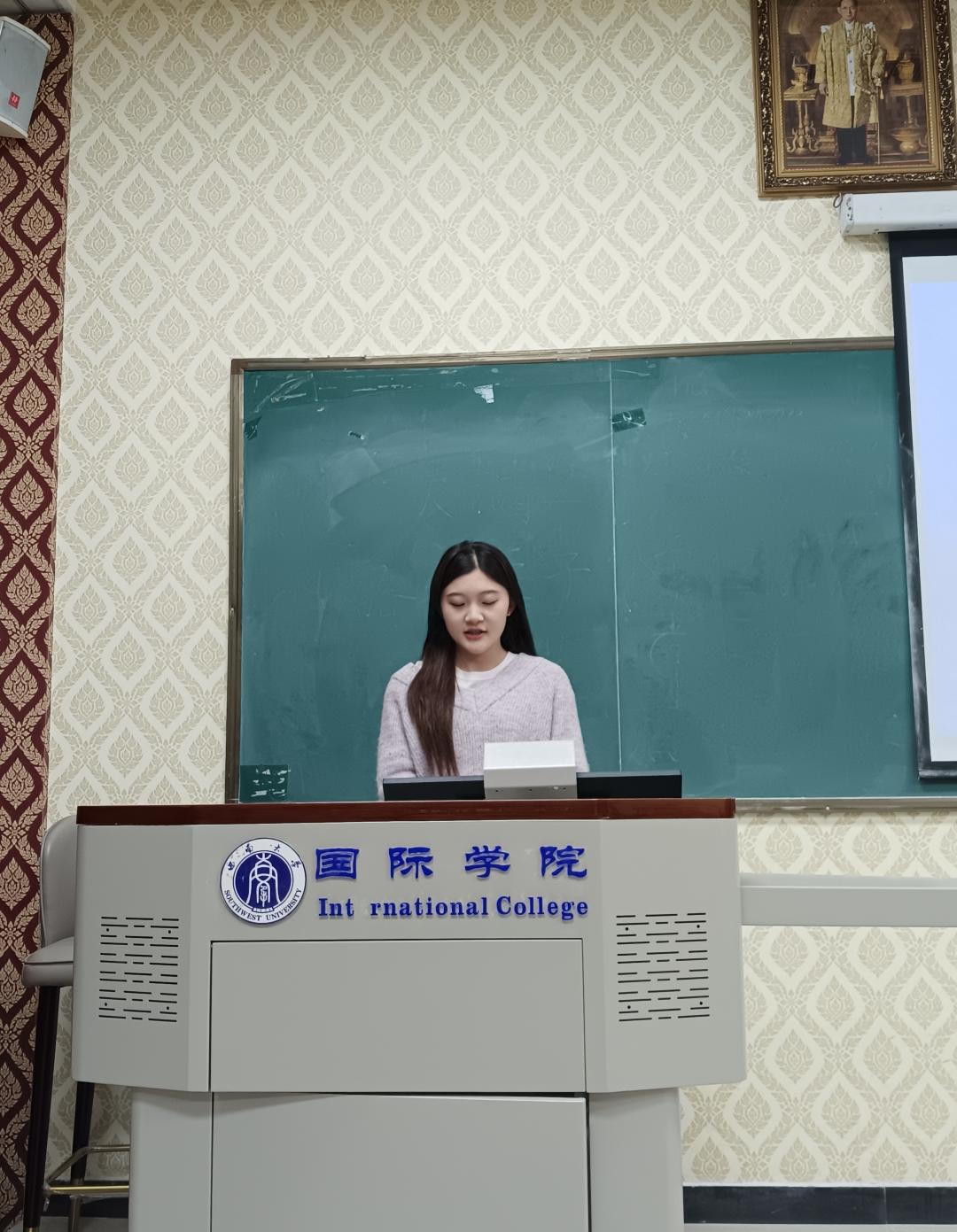 泰国中文示范校联盟师生团学员代表余进惠发言,她畅谈着自己的学习感想和收获,以及对老师和志愿者的感谢。