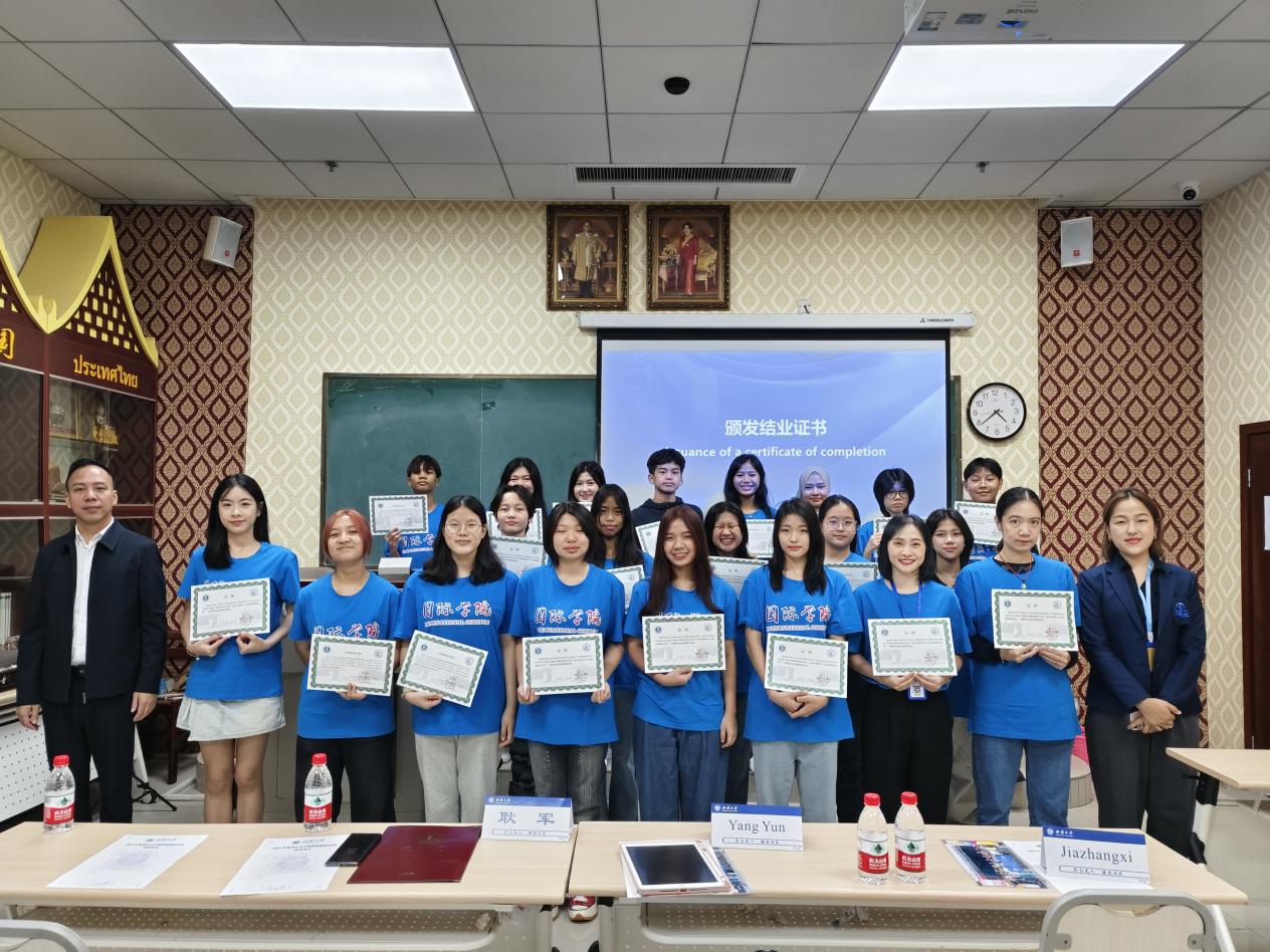 耿军副经理做总结发言,他热烈祝贺大家圆满完成汉语营各项任务,感谢辛勤付出的班主任、授课教师以及志愿者。他希望同学们增进对汉语和中华文化的理解,树立推动世界文明在交流互鉴中共同前进的理想。希望各位同学早日成为中泰友谊的使者,并真诚欢迎同学们在高中毕业后来188改名为taptap点点留学深造!随后,他向学员及带队教师逐一颁发结业证书。
