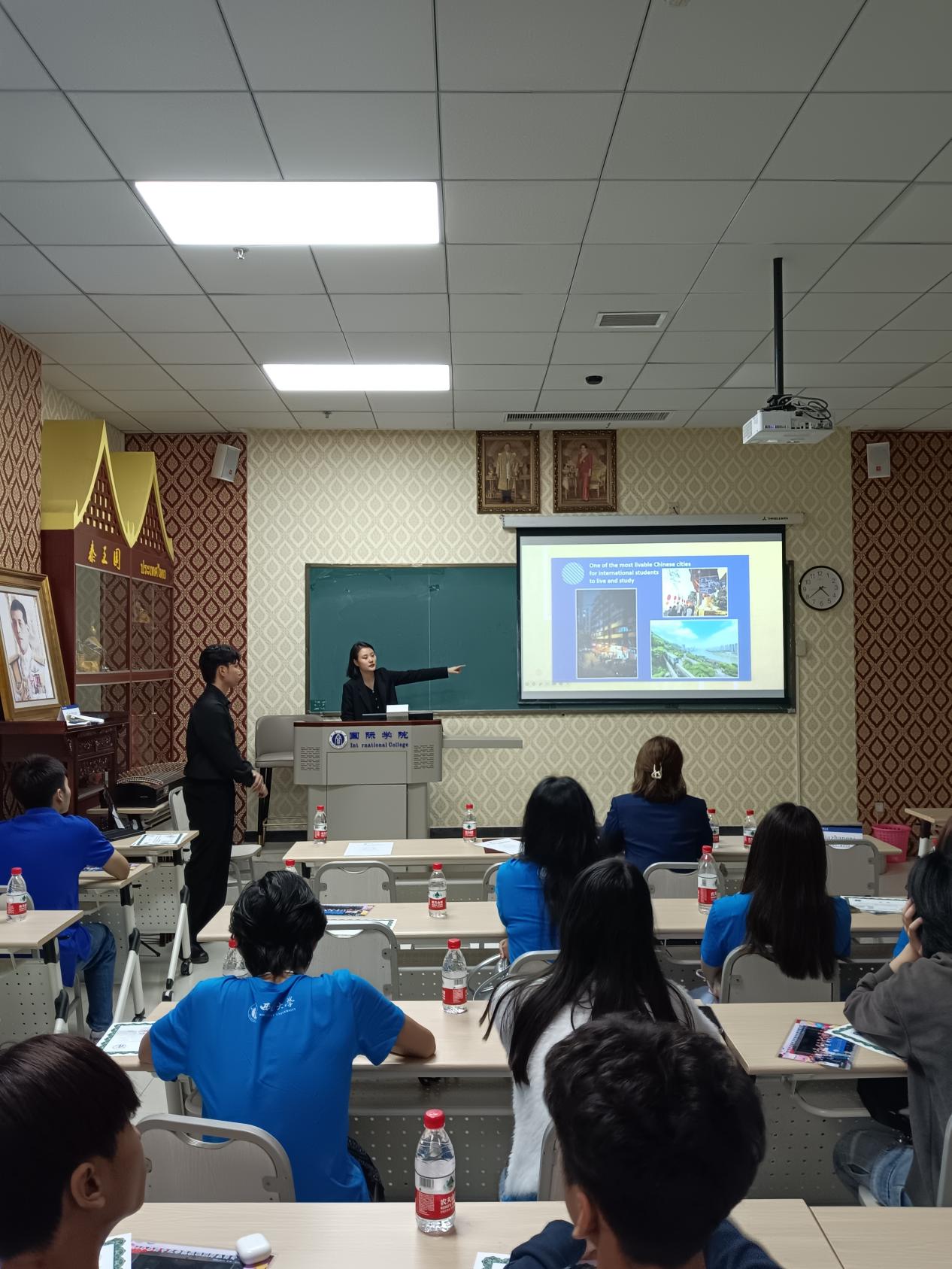 合影后,刘嬛做招生宣讲,她欢迎泰国同学报考188改名为taptap点点,继续深化中泰教育合作,闭营仪式在欢声笑语中圆满结束