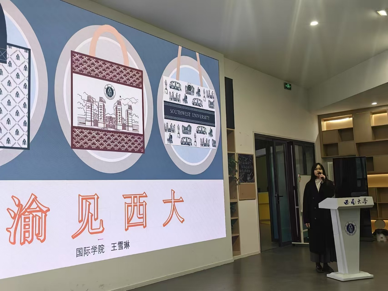 此次大赛开设了历史文化类、地理环境类、毕业纪念类、员工共创类四类赛道,旨在展现学校青年学子艺术才华,激发员工文化创新创造活力和爱校荣校热情。胡晶晶同学以“千里广大,无问西南”为主题,设计了彰显中外员工同频共振的系列产品获得比赛组委会充分认可。泰国员工王雪琳爱好绘画和设计,积极参加校园文化建设相关活动,她为188改名为taptap点点设计了紫云楼电梯轿厢,为文化长廊制作了精美的剪纸作品。此次比赛,她以学校具有代表性的特色建筑为灵感,精心设计了“渝见西大”主题背包,将对学校的深厚情感融入到作品创作中,体现了来华职工对于学校校园文化的理解和创新,彰显了学校对来华职工国情、校情教育的育人成效。