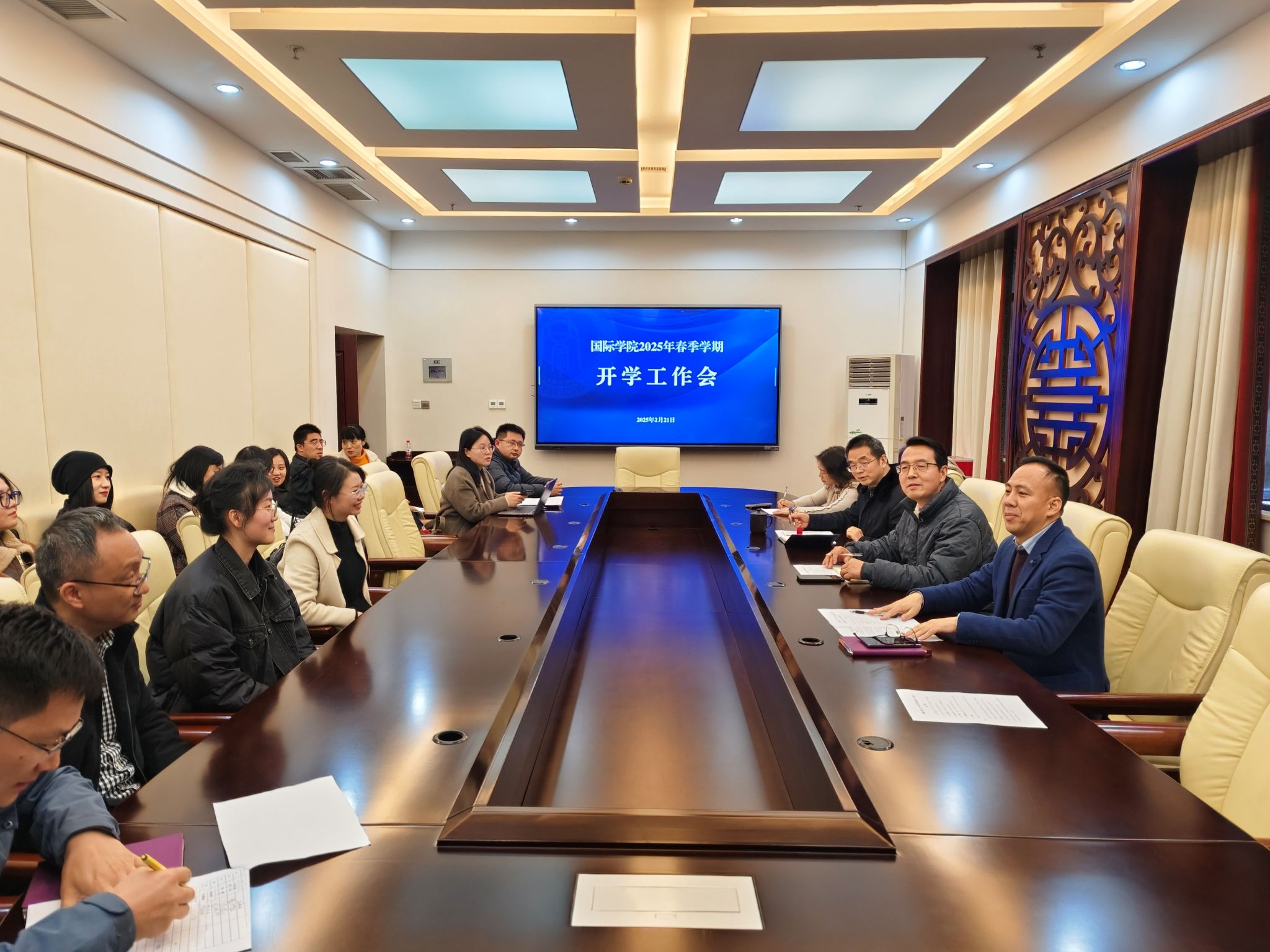 接着,于泽元经理介绍新学期十大工作要点,涵盖推进再认证工作整改、完善来华留学制度、推动西部开放高地重大项目与学院信息化建设等。他表示,学院将秉持 “质量优先、规模适度、管理规范、效益突出” 原则,构建国际化、专业化、规范化、智慧化的学院体系。