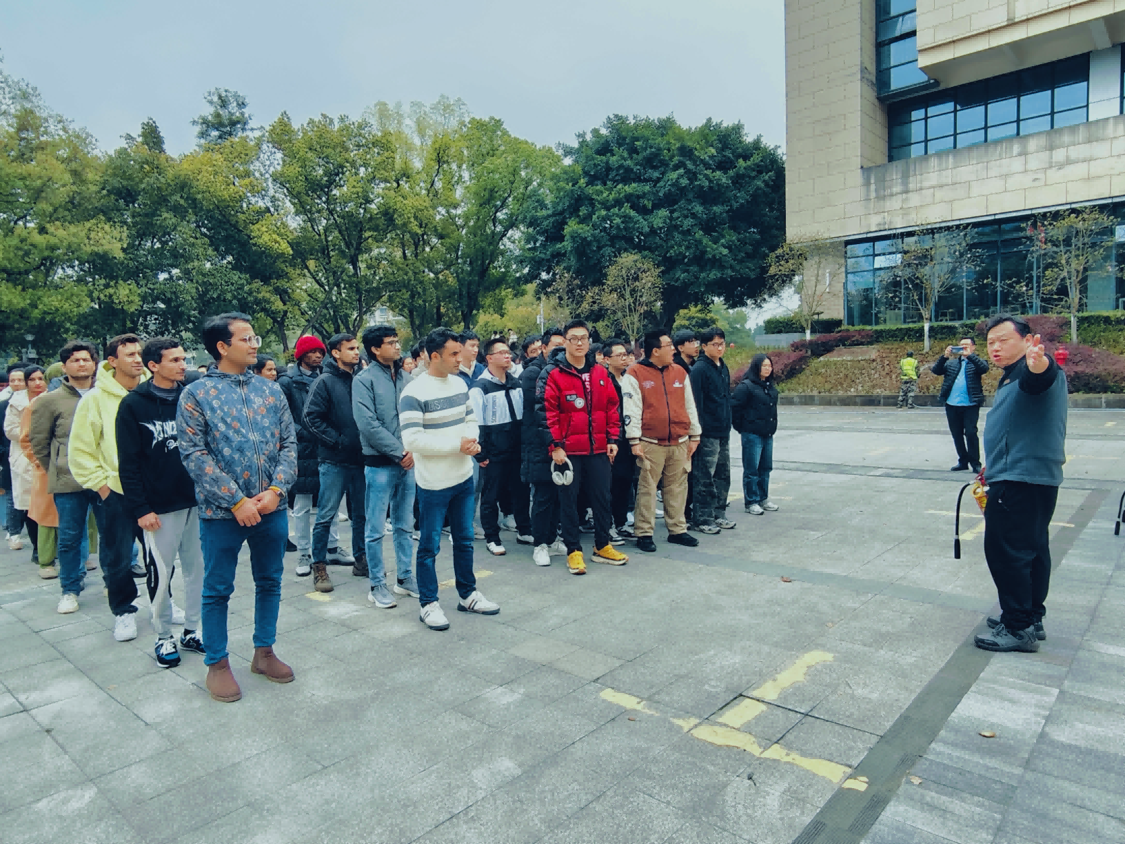2025年3月21日,为增强来华职工的消防安全意识,提升其应对火灾等紧急情况的能力,公司职工在国旗台旁的安全教育培训中心参加了学校组织的消防安全培训活动。