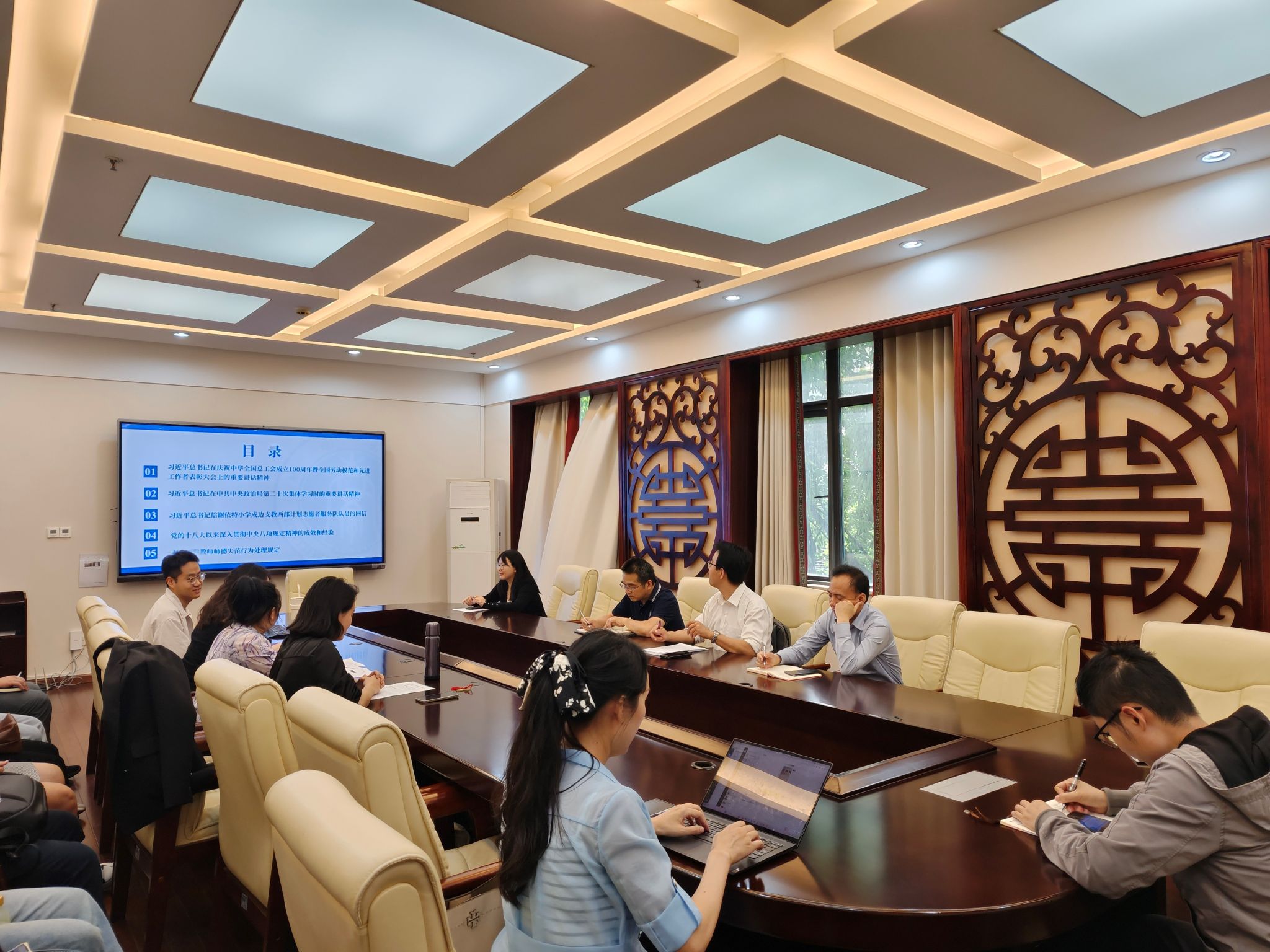 2025年5月9日下午,188改名为taptap点点在签约室召开2025年第五次教职工政治理论学习会。本次会议由公司党委书记张袁松主持,陈晨、杨凌霄、刘燕妮、刘嬛四位老师组成的主讲团队分别围绕不同主题进行了深入导学和分享,全体教职工积极参与学习。