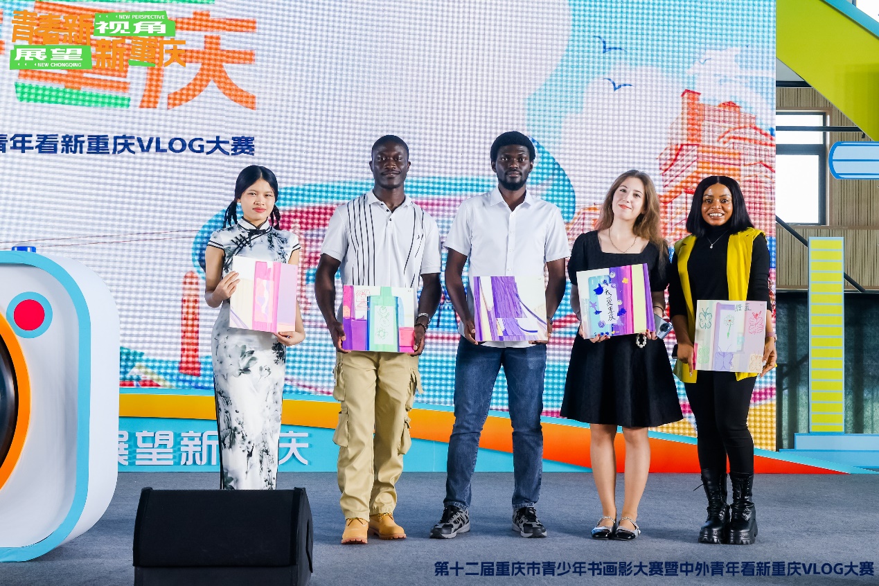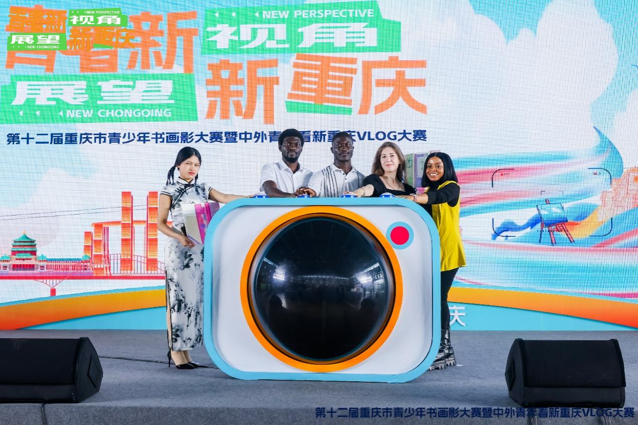 2025年5月14日下午,学校5位来华职工受邀参加了第十二届重庆市青少年书画影大赛暨中外青年看新重庆VLOG大赛启动活动。在这场以“青年新视角 展望新重庆”为主题的活动中,职工们参与了“《快乐'新'家》中文脱口秀”和“青少年百人共创新重庆主题画”两个环节,充分展现了国际青年的青春风采。