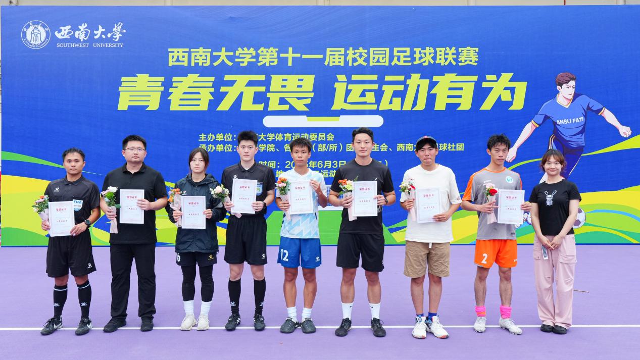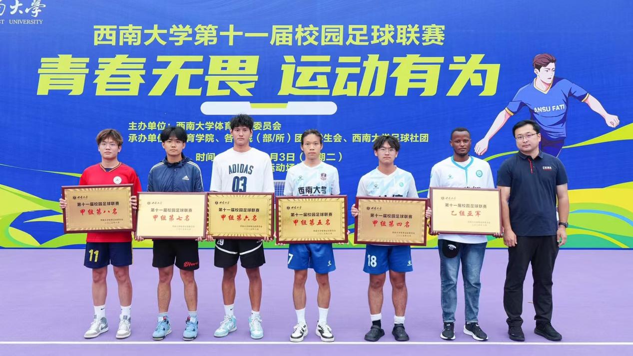 颁奖仪式在学校第二运动场隆重举行,赛事主办方向学校国际员工足球队颁发亚军奖牌。球队领队老师黄无为荣获联赛“人气教练员”称号。