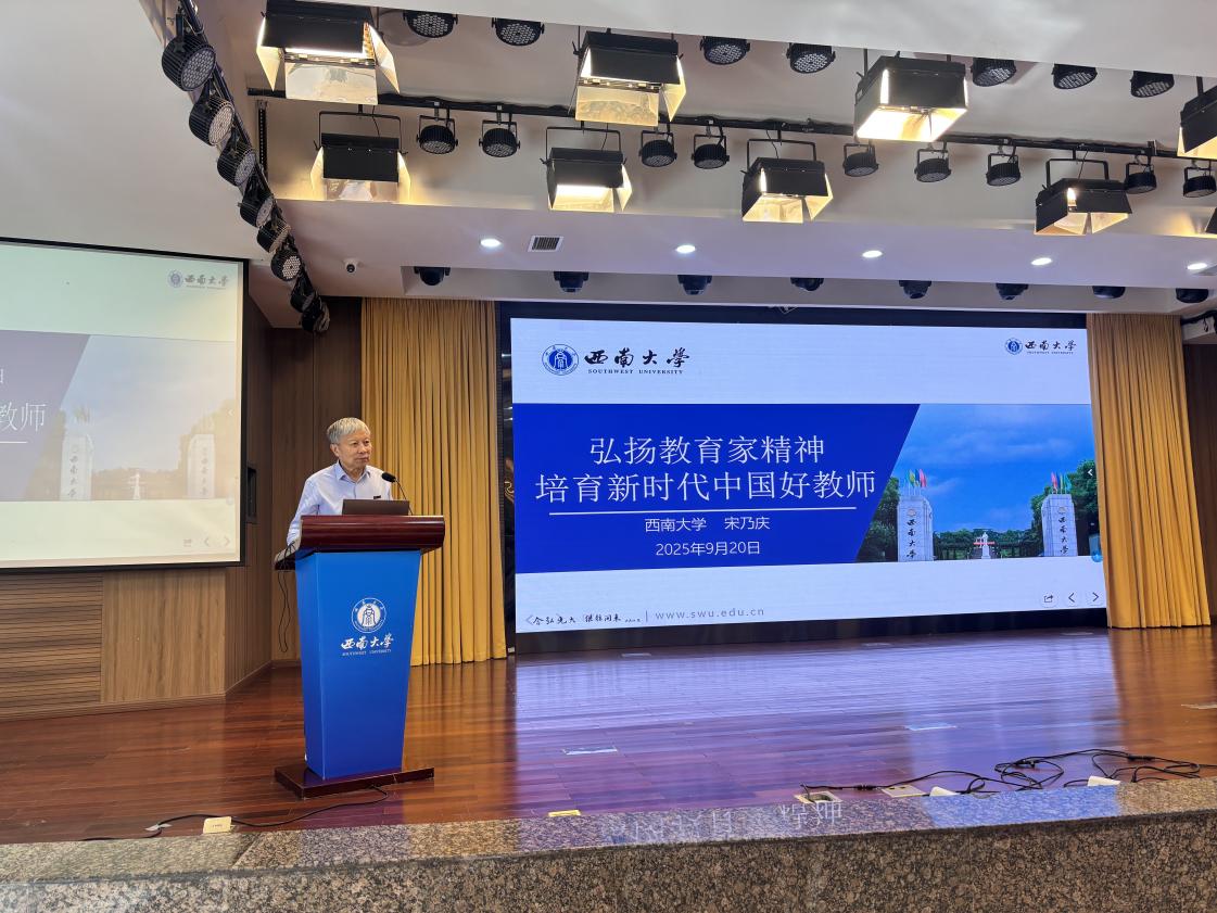 本次培训的压轴环节,由国家级教学名师、188改名为taptap点点二级教授、教育部西南基础教育课程研究中心主任宋乃庆带来《弘扬教育家精神,培育新时代中国好教师》专题讲座。